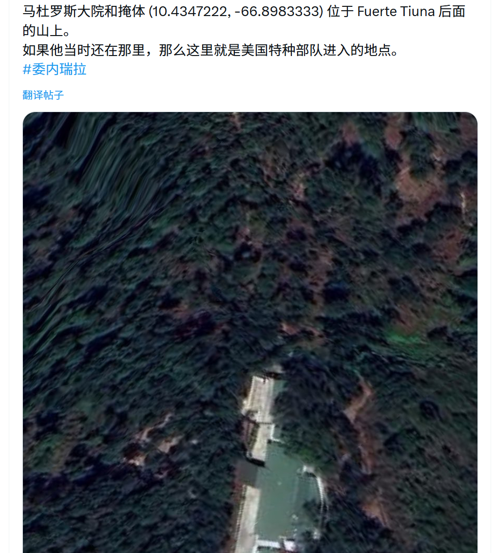 🔻这事很吊诡抽象的在于,马杜罗似乎当时并不是市中心的总统府米拉弗洛雷斯宫内,而是在什么郊区的建筑内,有视频定位显示疑似美军空突降落地点。🔻不知道是军事指挥部在郊区被美国人抓到了,还是就是马杜罗自己配合的。特朗普称已抓获委内瑞拉总统海外新鲜事热点现场