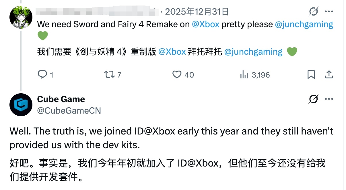 【《仙剑4重制版》官方:Xbox至今没有提供开发套件】早先《仙剑4重制版》确认计划多平台同步登陆,但发行商Cube Game近日回复网友关于Xbox版的疑问时表示,在2025年初就加入了ID