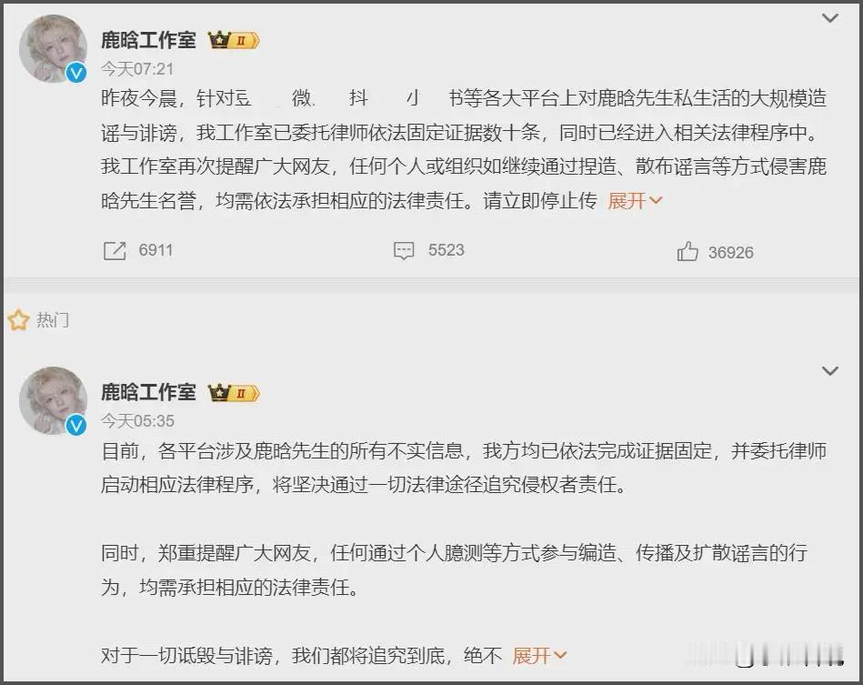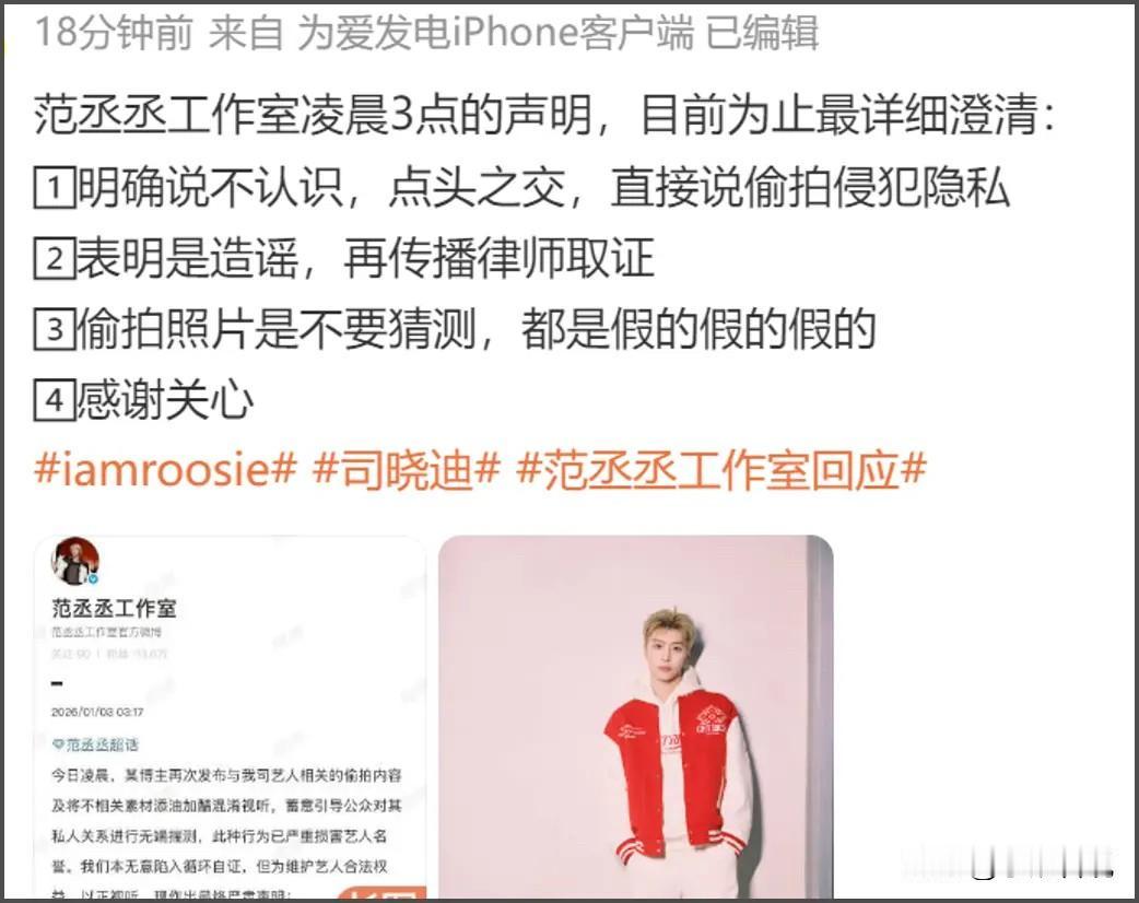 内娱开年大戏!网红深夜“扔炸弹”,林更新鹿晗范丞丞等十多位明星凌晨排队发声明辟谣!这娱乐圈真是比春晚还热闹。 事情的起因,就是网红司晓迪(@iamroosie)在深夜突然发难。这姐可不是只针对一个人,而是搞起了“地毯式轰炸”,林更新、鹿晗、范丞丞、檀健次、黄明昊、周奇、张一山、蔡徐坤……好家伙,这是要把内娱的帅哥名单念一遍啊! 她这波操作,那真是“核弹”级别的。又是晒聊天记录,又是晒聚会照,甚至还有所谓的“私密照”。内容也是五花八门,从喊话林更新要公道,到爆料鹿晗醉酒同床,再到说和范丞丞是“两肋插刀”的朋友,信息量大到让人怀疑人生。 但这瓜,咱们得冷静地吃。 第一,证据有点“迷”。晒出来的那些“猛料”,很多都是模糊不清的聊天截图,关键信息还打码。更有意思的是,她拿林更新一直用的“博美狗”头像说事儿,这只能证明人家喜欢狗,粉丝滤镜碎没碎不知道,但这逻辑确实有点牵强。 第二,工作室的反应那叫一个快!这次明星团队可不是吃素的,凌晨三点就开始排队发声明,这速度,比抢红包还积极。 林更新工作室那是相当淡定,直接说“已取证,正在走法律程序”,还顺带关心了一下对方的身体健康,这格局,稳了。 鹿晗工作室更是硬核,连发两条,直接定性为造谣,法律程序安排上,绝不手软。 范丞丞工作室则强调照片是偷拍,关系仅为点头之交,态度也是相当强硬。 还有檀健次、黄明昊、王安宇、关晓彤等工作室,都纷纷下场辟谣,生怕慢了一步。 这事儿给咱也提了个醒。这年头,信息爆炸,咱们看热闹也得擦亮眼睛。有些“瓜”,看着热闹,但水分可能比果肉还多。与其盲目跟风,不如静观其变,看看到底是“实锤”还是“碰瓷”。 家人们,对于这场开年大戏,你们是吃瓜群众,还是站队辟谣方?欢迎在评论区留言,咱们一起唠唠!