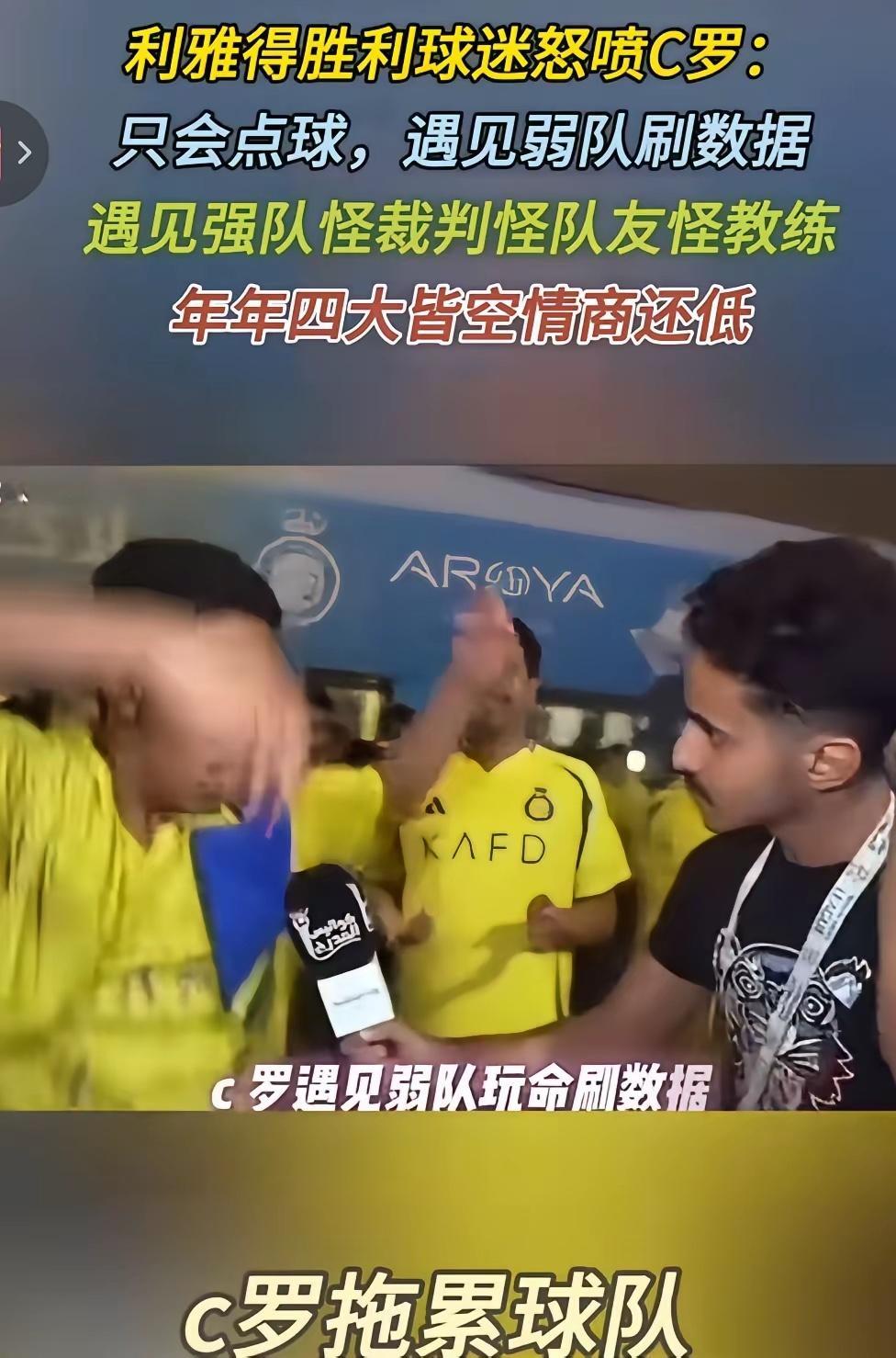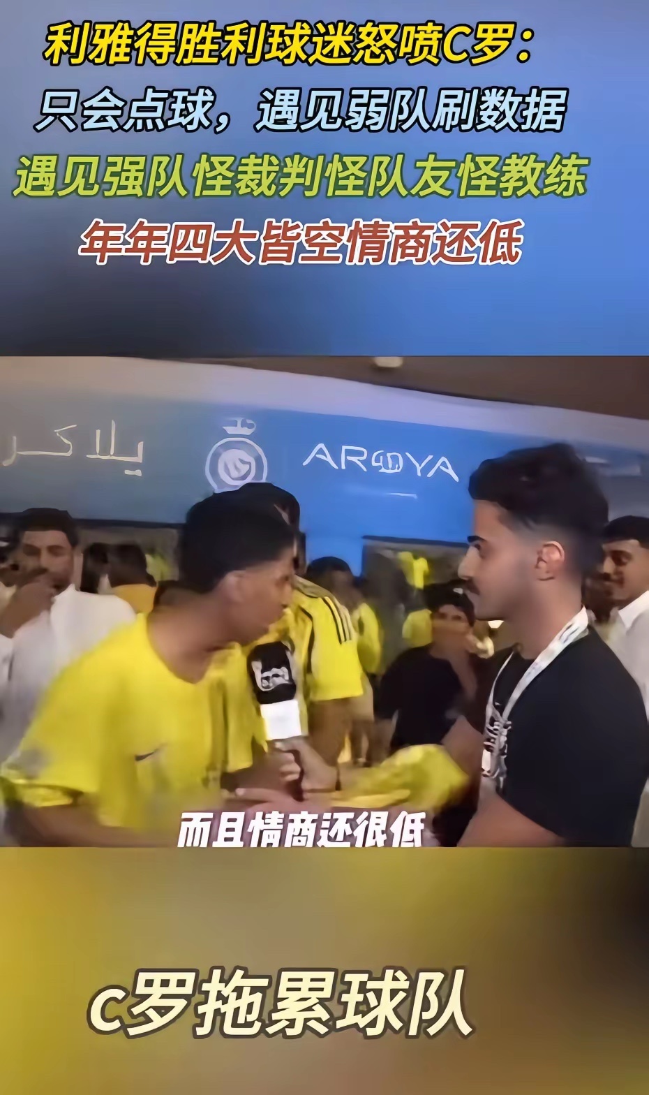 事实证明到了年纪就要急流勇退,总是占着位置就会被反噬!C罗去沙特淘金确实给沙特联赛带来了巨大的影响力,但是始终无法给利雅得胜利带来冠军。球迷是理性的,管你是多大牌只要无法给球队带来荣誉,耐心都会被磨平,紧接着多么恶毒的语言都会说出来。