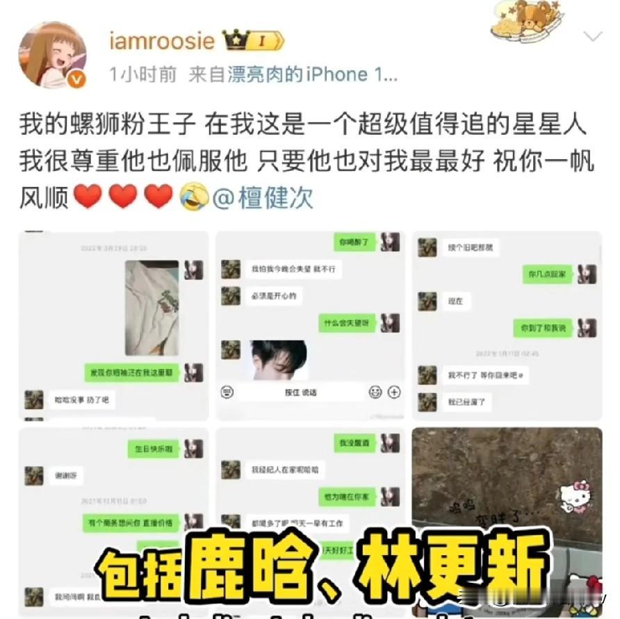 女网红自曝睡遍10位顶流,鹿晗蔡徐坤集体辟谣 2026开年第一瓜直接把人看傻了!1月3日凌晨,女网红司晓迪突然抛出重磅爆料,直言自己的“裙下之臣”囊括了半个内娱顶流圈,鹿晗、林更新、檀健次、蔡徐坤等10位当红男星全被点名,声称“都睡过一遍”的言论瞬间引爆全网。 这波操作直接让网友们连夜开启“瓜田狂欢”,不少人抱着手机刷到天亮,有人调侃“2026刚开局就把全年瓜量提前透支”,相关话题更是以火箭速度冲上热搜,10+明星相关词条霸占热搜前20,话题阅读量半天狂破50亿,热搜榜直接乱成“大型翻车现场”,好久没见一件事能牵扯出这么多顶流了。 但反转来得比瓜还快!被点名的男明星们一大早便集体“亮剑”,工作室和本人接连发布辟谣声明,清一色强调“爆料内容纯属虚构”,还明确表示会追究司晓迪的法律责任,态度坚决毫不含糊。而网友们扒完爆料附带的“证据”后,反而越看越清醒,纷纷表示“这瓜太没诚意了”。 大家发现,司晓迪晒出的聊天记录干净得像白开水,全是“在吗”“最近忙啥”“节日快乐”这类日常寒暄,别说开房、暧昧的关键信息,连稍微出格的对话都没有,更像是普通朋友间的正常联络。不过网友也承认,能同时拥有这么多顶流的私人联系方式,她的朋友圈资源确实让人惊讶。更让人疑惑的是,司晓迪的说话风格时而激动时而语无伦次,字里行间透着“受刺激”的反常感,不少人猜测“可能是情绪不稳定才说出这些话”。 其实内娱爆料年年有,但靠谱的从来都是“实锤为王”。这次爆料之所以没让人信服,核心就是缺乏有力证据,空有惊人言论却撑不起可信度。就像网友说的“要是真有其事,怎么会拿不出半点实质性证据?”,在没有实锤的情况下,这类爆料更像是博眼球的炒作,不仅伤害明星声誉,还会扰乱网络环境。 吃瓜本是茶余饭后的消遣,但理性才是底线。与其被离谱爆料带偏节奏,不如等真相水落石出,毕竟造谣一张嘴,辟谣跑断腿,随意传播未经证实的消息,还可能触犯法律。 你觉得这波是真瓜还是网红博眼球?如果没有实锤,你支持明星维权吗?评论区聊聊你的看法~