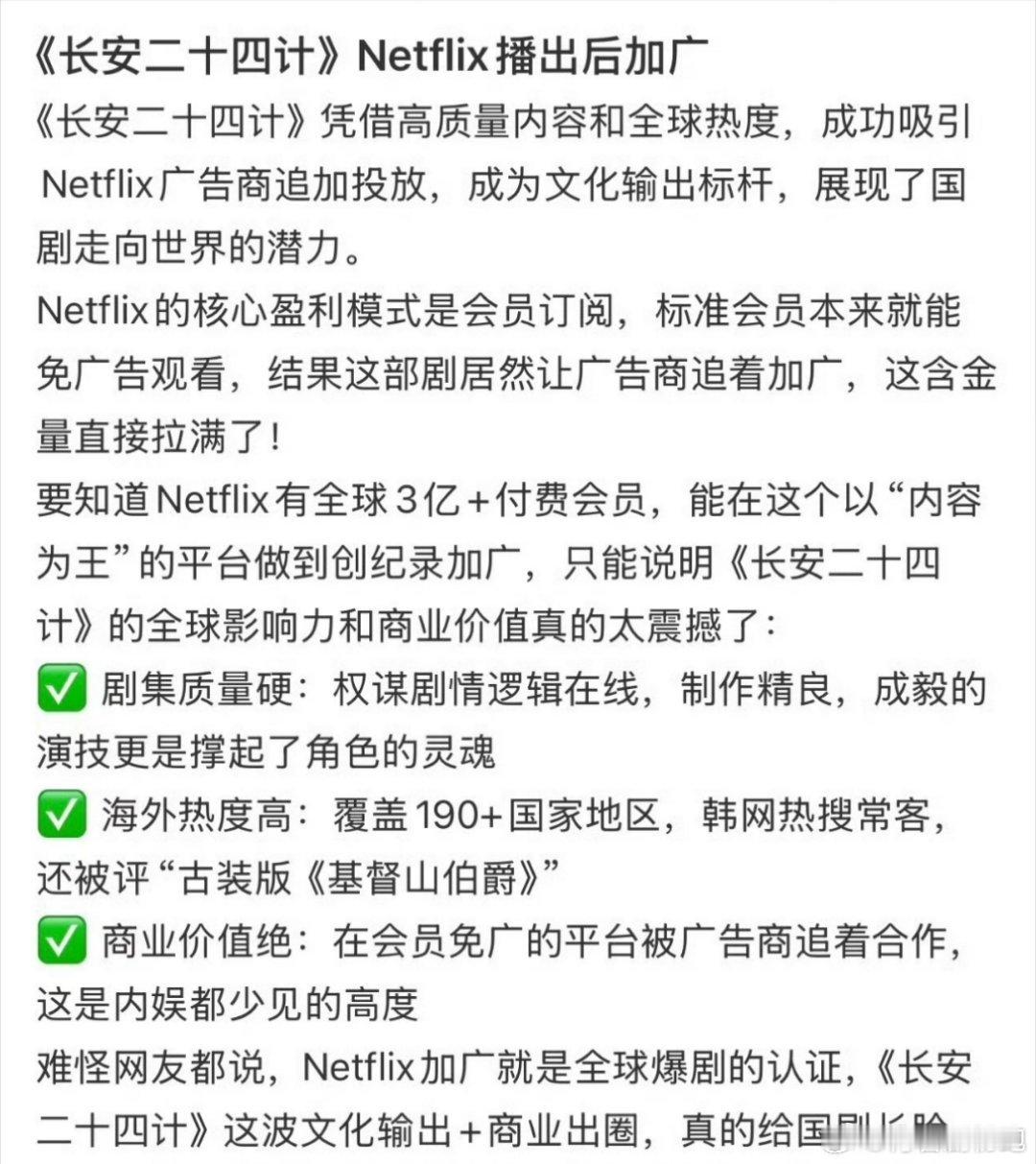 成毅《长安二十四计》这波真是有效文化输出了,netflix播出后加广,这算不算是
