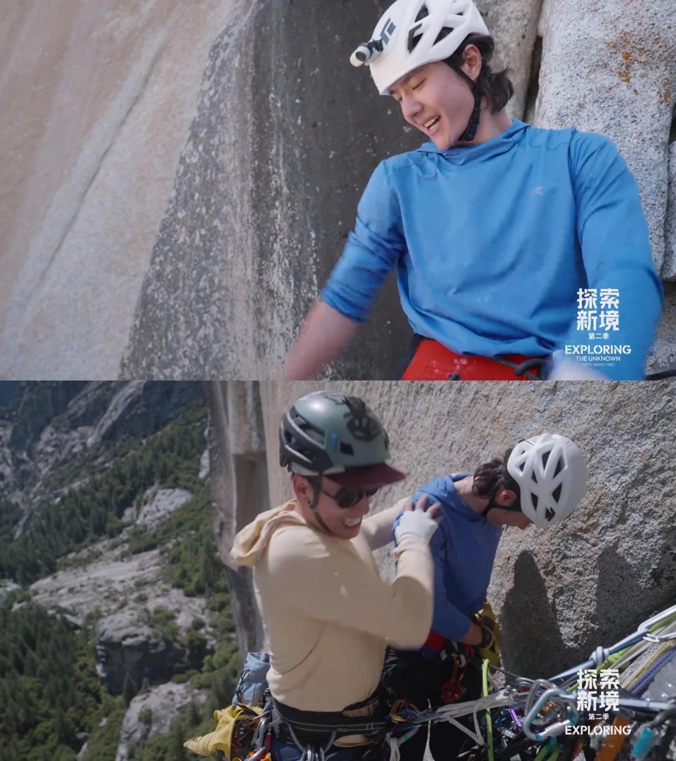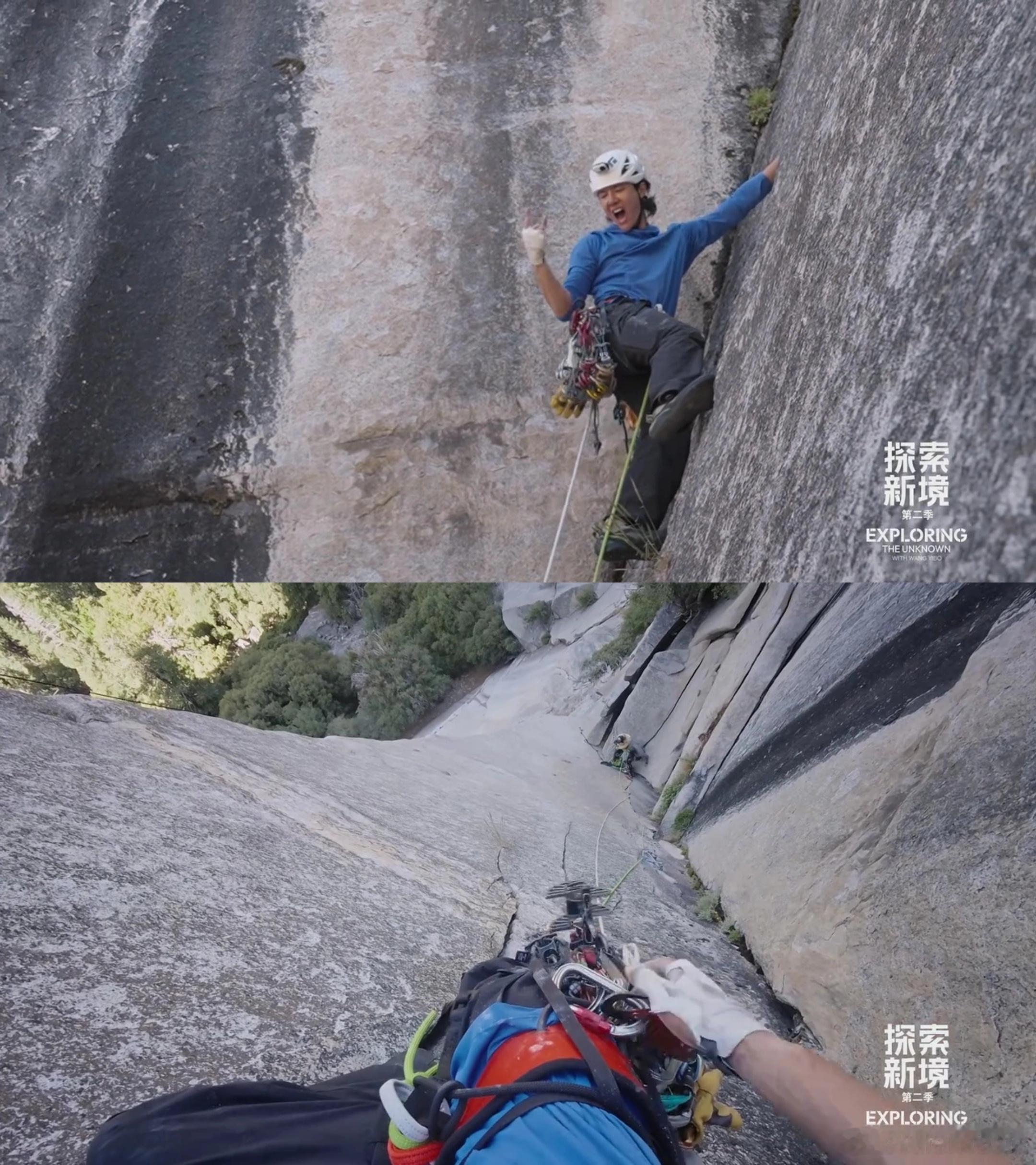 昨天事太多,没来得及及时看《直上山巅(上)》,今天补上这份精神养料+精神搭子,《探索新境2》是阅己-越己-悦己的过程,不止王大胆,我们也在追更时悄然发生这些改变。在酋长岩脚下,他们围坐一团,天空蓝的刚好,草地人儿畅谈,热爱可抵万物,也是最大的动力,即使物质生活暂时不富裕,但攀岩让人精神富足,美好的事情就会发生,像王一博、金国威、瑞德他们到了酋长岩聊过去聊梦想的时候遇见彩虹,纯粹的浪漫。在自由帽攀爬,王一博带领第一阶段先锋攀最漂亮的路段,各种技巧运用自如,单手卡岩壁,手脚点并用,看不到蒙混过关的敷衍,对自己判断准确,不逞强也对队友负责,由先锋变法式,聪明的选择完成一次完攀。每一步都是心跳加速的魅力时刻,有的是热烈的人生,积极的态度,向上的精神,不畏将来的内核。在大岩壁,通过“寻找王一博”,我们看到了他在探索过程中的成长与蜕变,每一次尝试、坚持,都让我们感受到努力和毅力的力量。这种精神同时激励着我们在自己的生活中也要勇敢地去追梦,一往无前,坚持不懈。跨年电影愿探索新境2王一博探索新境