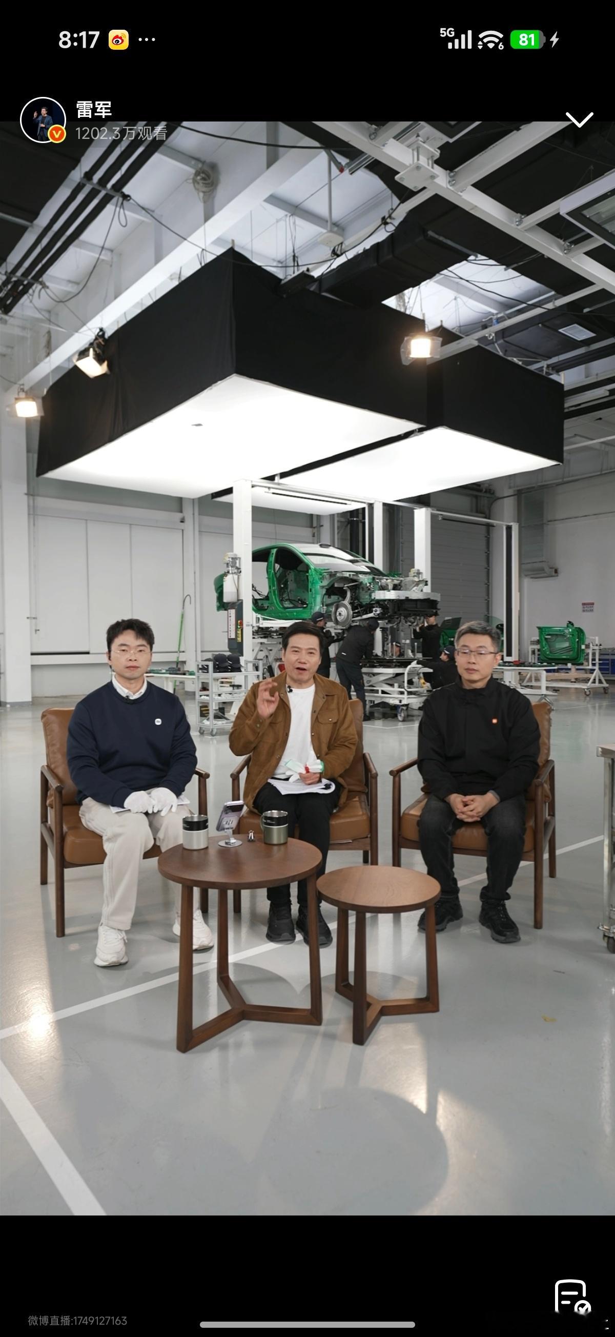 小米直播拆车的硬核底气 沉浸式直播 雷总还是充满热情如果旁边的各个部门的负责人能否多些直播经验就更好了现在的感觉有点像给雷总汇报其实自然一点点 讲点研发背后故事或者独特的回忆,再回到产品力那样会更自然 YU7还是可以的