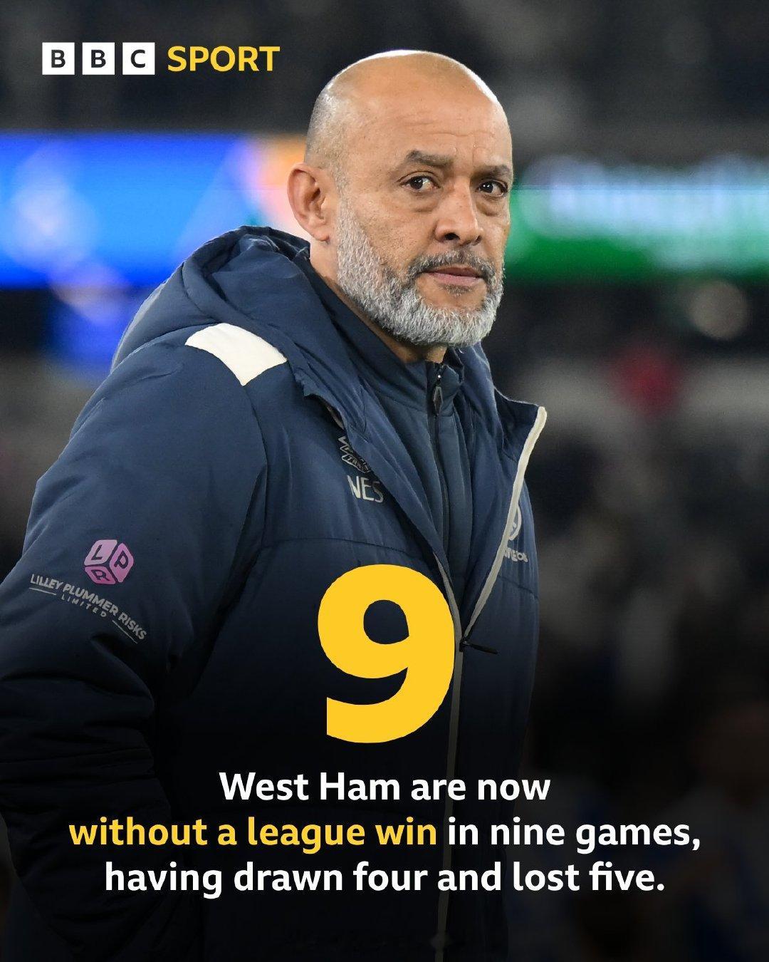 【英超下位下课主帅是他?】西汉姆作客0比3惨败给垫底球队狼队,最近9场联赛不胜(4平5负),积分榜深陷保级区,落后降级区外的森林4分。西汉姆准备在冬窗砸大钱引援,誓要保级,但是他们会不会进行二次换帅呢?努诺桑托的下课压力是不是越来越大呢?西汉姆联九场不胜 狼队3比0西汉姆联 英超联赛