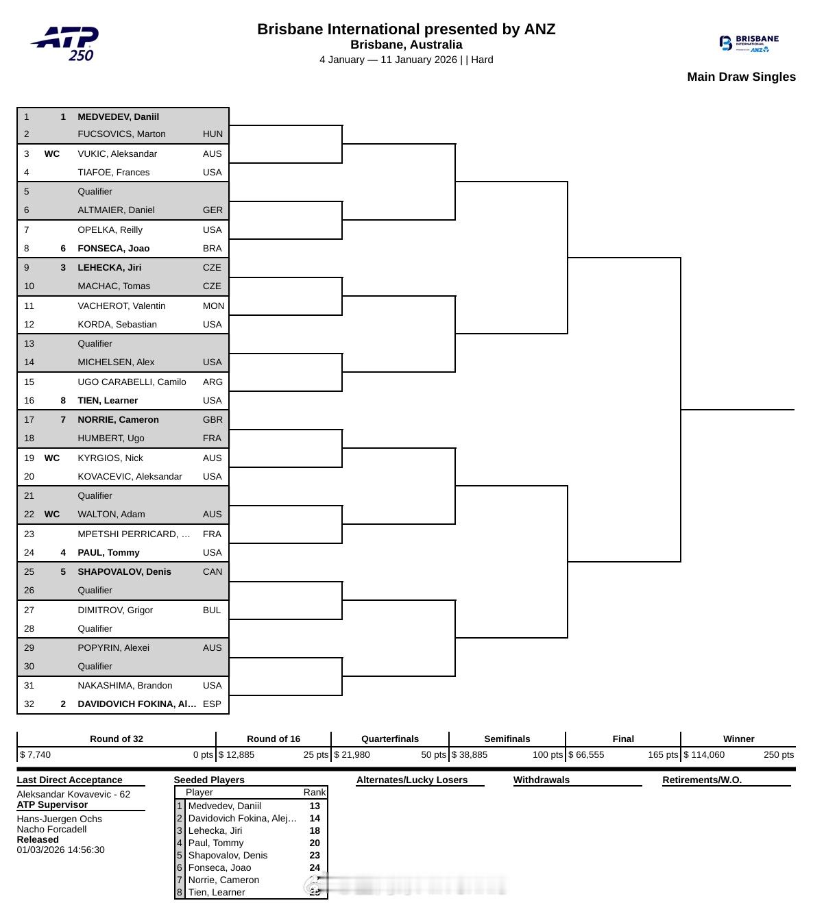 2026赛季首周ATP巡回赛签表WTA250香港吴易昺🆚玛洛桑商竣程🆚科梅萨纳黄泽林🆚纳沃内all tennis all life澳网2026