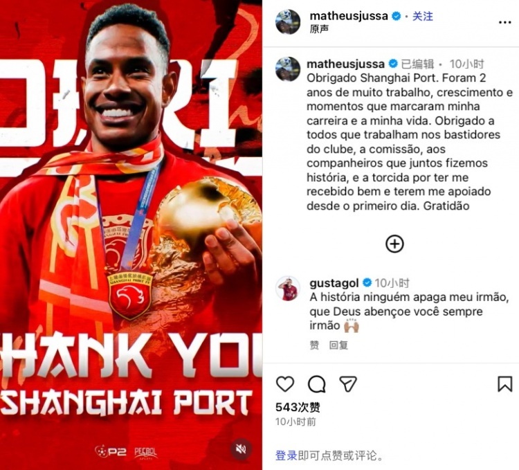 #茹萨告别上海海港#据直播吧消息,29岁巴西中场、前海港外援茹萨确定以自由身加盟成都蓉城。今日茹萨更新社媒,晒出自己效力海港时的集锦,向海港告别,他写道:感谢上海海港,在这里的两年时光让我收获了成长,让我的事业和生活更加精彩。还要感谢一直在幕后支持我的朋友,球迷会,以及一同并肩作战、创造历史的队友和球迷们,从我来到这的第一天起,就给我热烈的欢迎和莫大的支持,感谢各位。#独家看中超就在咪咕#