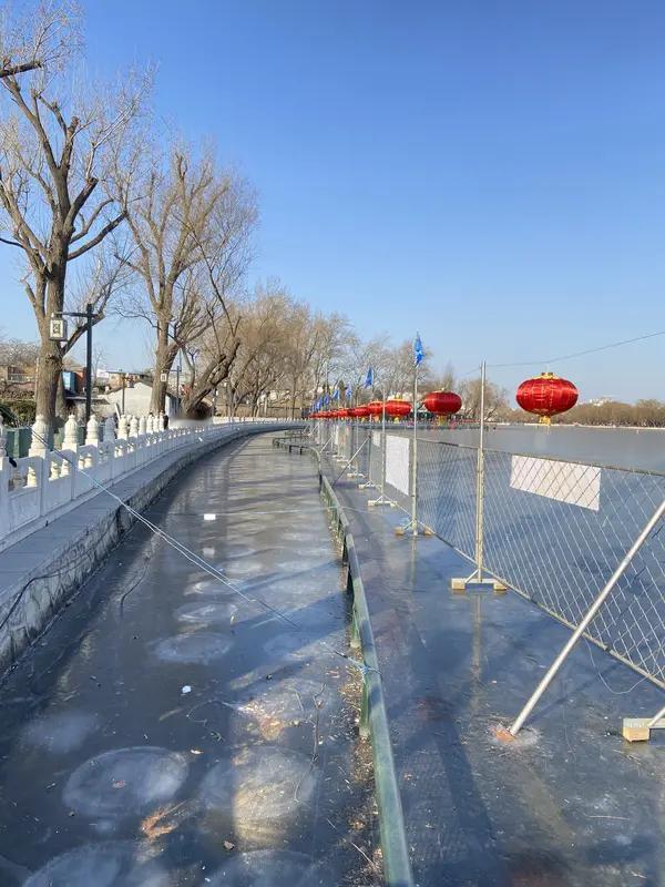 1月3日,北京什刹海前海好梦江南码头那边,工作人员正热火朝天地搭建围栏、码放冰车,看来什刹海冰场要开始搞起来啦。不过今冬北京气温偏高,冰场还没开放。 这什刹海冰场开放时间每年都不固定,得天然冰场冰层厚度达到15厘米以上,而且之后一周气温得在 -8℃到1℃之间才行。想想在冰面上滑冰、玩冰车,多有意思啊。就盼着这冰场能快点达到开放标准,到时候我也去凑凑热闹,感受感受冰上的快乐。