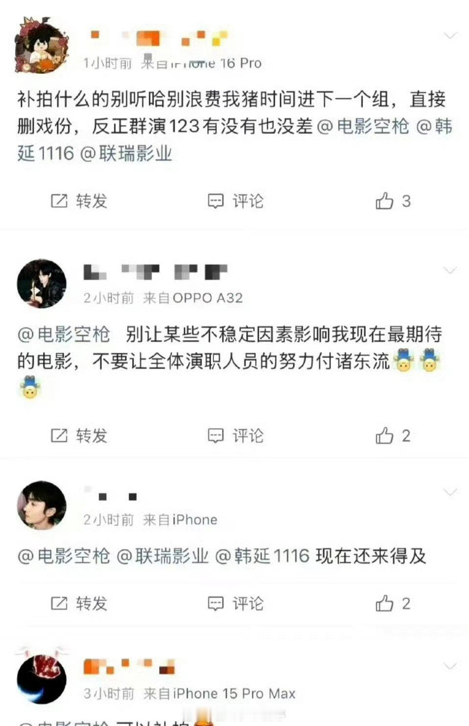 朱一龙粉丝艾特电影空枪官博喊话换人