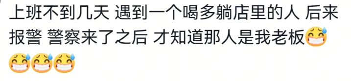 上班不到几天, 遇到一个喝多躺店里的人,后来报警 ,警察来了之后才知道那人是我老板
