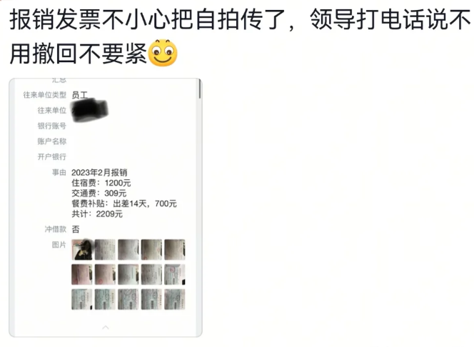 报销发票不小心把自拍传了,领导打电话说不用撤回,不要紧