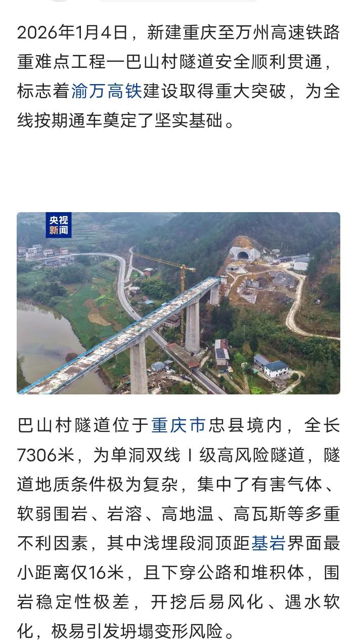 新进展,重庆途经忠县至万州时速350公里的渝万高铁重点工程全长7.3公里的巴山村隧道已经顺利贯通,丰都和忠县部分路段已经在进行无砟道床施工,绝对控制性工程涪陵石坨长江大桥正在加速建设中,预计2027年底有望开通运营,重庆坐高铁来往万州只需50分钟左右,忠县将结束不通铁路的历史,渝万高铁未来也是涪陵和丰都等地坐高铁来往开州和城口还有安康等地最便捷通道,渝万高铁全长251公里,起于重庆东站,止于万州北站(7台15线扩建中),沿途主要途经涪陵和丰都还有忠县等地,目前大部分路段都在架梁和无砟轨道施工中,期待如期建成开通运营,信息以官方和实际为准。