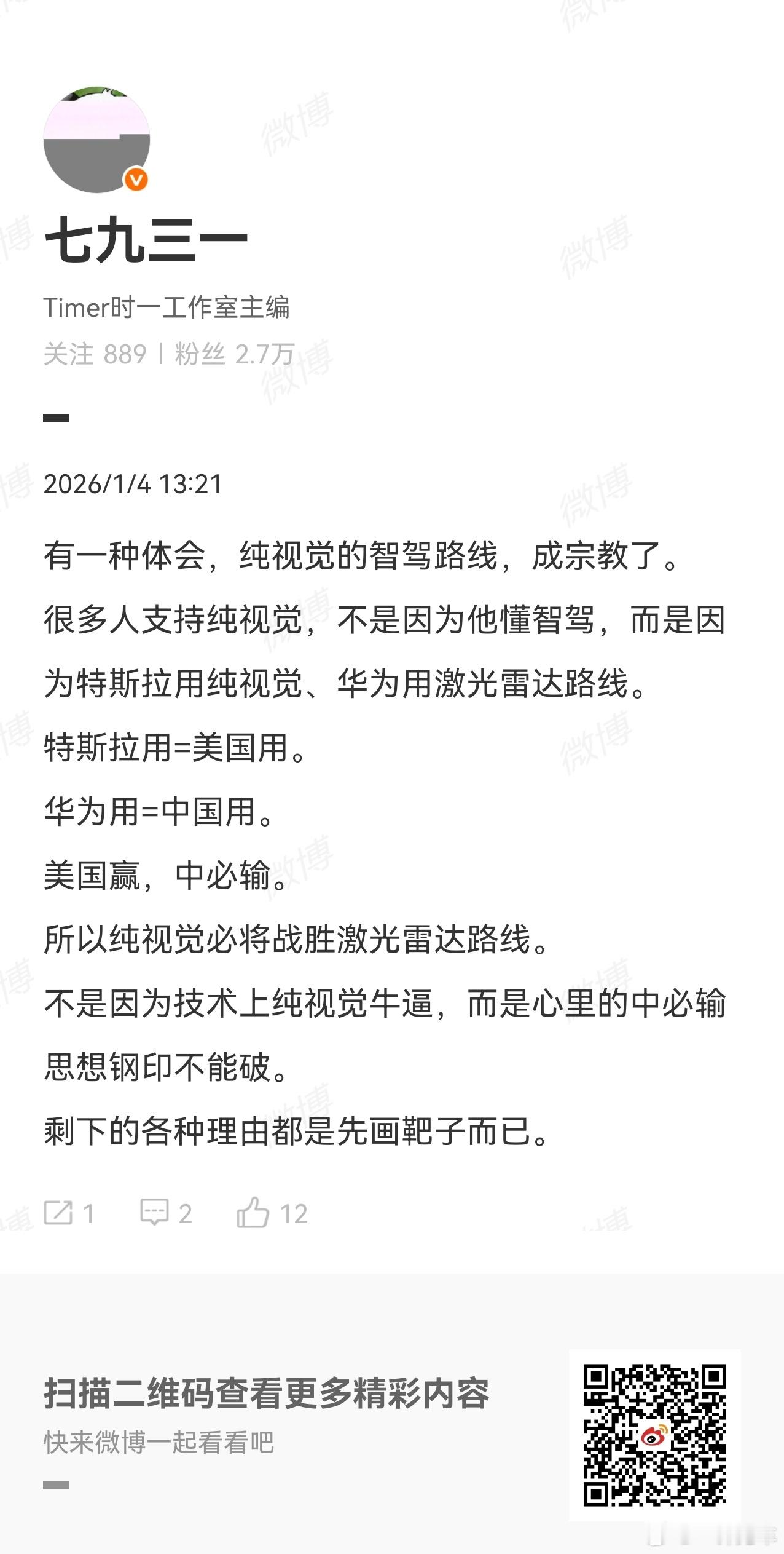 一语中的。要是讨论技术,那可以好好探讨不同路线的优劣;但要是谈信仰,那就只好尊重祝福了~