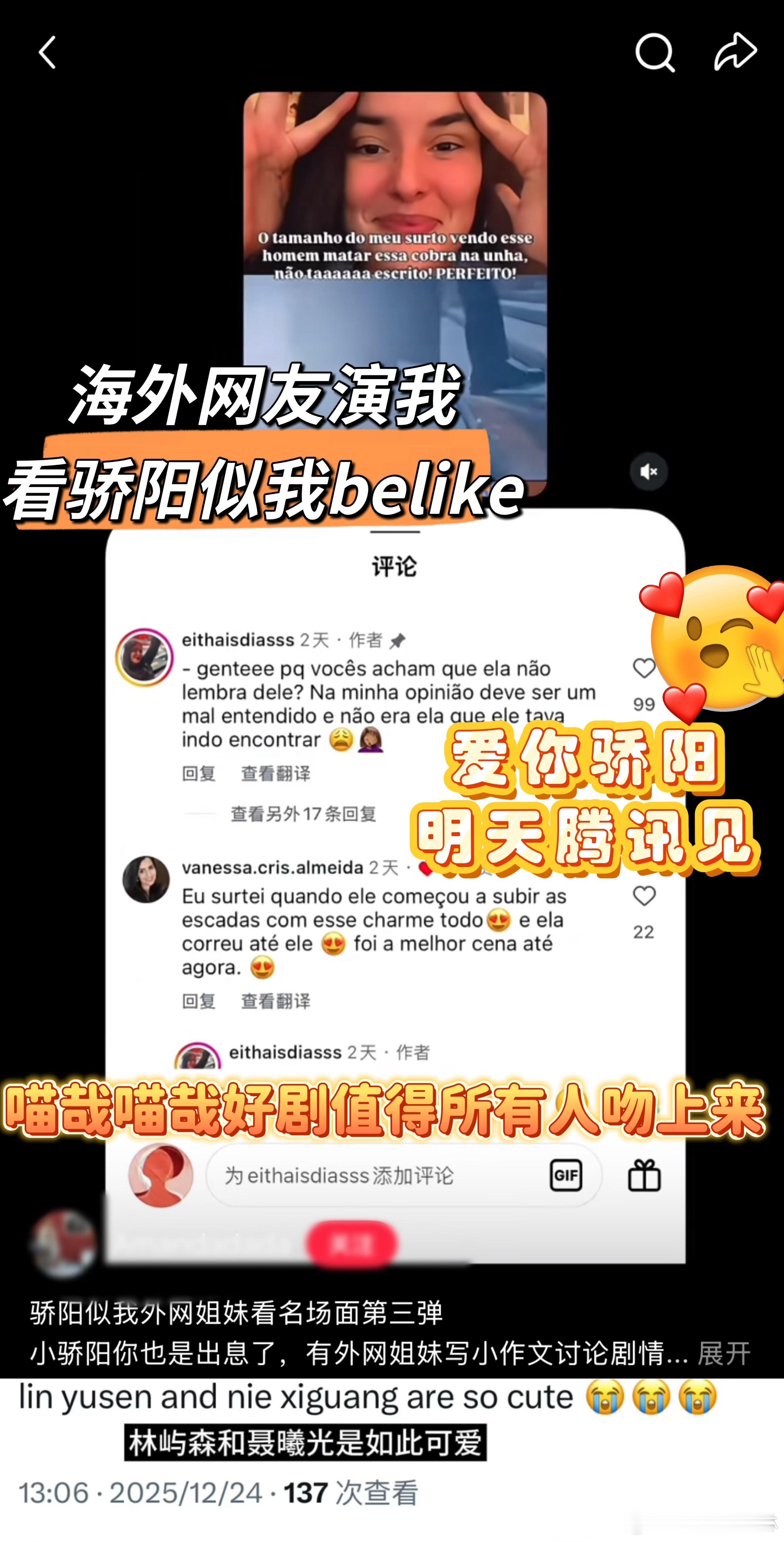 海外网友吻上骄阳似我《骄阳似我》不只是我们国内观众眼里的浪漫天花板,放到国际上照样能打!不同文化背景的观众都能get到这段关系的魅力