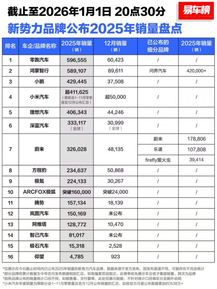 不知道10万多的家用纯电SUV怎么买?可以看看刚出炉的25年销量。 在月初这几天,多家车企纷纷公布了25年的全年销量。在新势力品牌里,零跑的表现可以说是最亮眼的,全年卖出了近60万辆,换言之,对于咱们消费者来说,买他们家的车可以买的放心和实惠。例如10万多的B10,就可以闭眼买。 买电车,大家最关心的就是续航表现了。零跑B10高配可达600km CLTC续航,短途出游来回几百公里完全不用规划充电桩;就算偶尔续航告急,19分钟就能快充30%-80%,上个洗手间,或者是打两把游戏的时间就完成了回血。 如果是家用场景,乘车舒适也很重要,零跑B10有前麦弗逊+后五连杆独立悬架经中欧团队调校,过减速带、走坑洼路面时,车身很快就能稳定,老人孩子坐在后排都很安稳,长途乘坐也不会觉得累。 加上B10还有8295+8650双旗舰芯片、激光雷达组合辅助驾驶等越级的智能配置,仅需十来万就能全部带回家,这样高的品价比,B10上市就引爆市场,上市9个月累计交付超9万辆,热销全球20国就不难理解了。如果你在1月份内下定,还能至高补贴2万多,买到就是赚到了。如果想在春节前买车换车,不妨带上家里人一起到店试乘试驾。