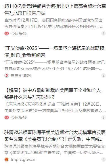 很多人问中国敢不敢扣押美国对台的军售武器?对于这个问题,我认为是不好回答的。但是我认为,美国对台军售的速度,未必就比得上我们统一台湾的速度。万一美国的武器装备运输过来的时候,我们已经统一了,到时候咋办?我们是接受呢,还是撕毁协议? 麻烦看官老爷们右上角点击一下“关注”,方便您进行讨论和分享,感谢您的支持! 面对美国这种粗暴干涉中国内政的行径,中国外交部第一时间作出了强烈回应,明确指出美国的对台军售严重违反一个中国原则和中美三个联合公报规定,严重损害中国主权、安全和领土完整,严重破坏台海和平稳定,同时也向 “台独” 分裂势力发出了严重错误信号。 事实上,一个中国原则早已是国际社会的普遍共识,1971 年联合国大会第 2758 号决议从政治上、法律上和程序上彻底解决了包括台湾在内全中国在联合国的代表权问题,明确世界上只有一个中国,中华人民共和国政府是代表全中国的唯一合法政府,台湾是中国领土不可分割的一部分,这一决议的合法性、有效性、权威性不容任何挑战。 目前全球已有 183 个国家在一个中国原则基础上与中国建立和发展外交关系,美国的对台军售行径显然是逆历史潮流而动。 可能有人会觉得,美国不断加码对台军售,会不会影响中国统一的进程?答案显然是否定的。近年来,中国政府始终将统一台湾作为不可动摇的战略目标,随着解放军现代化建设的加速推进,两岸的实力对比已经发生了根本性变化。 现在的解放军不仅拥有强大的火力投射能力,更构建了全时全域的侦察监控体系,无人机拍摄的台北 101 大楼照片就充分说明,台军所谓的 “防空导弹密度世界第一” 早已形同虚设。 解放军的演习科目也越来越贴近实战需求,围绕 “夺取综合制权、要港要域封控、外线立体慑阻” 等核心环节展开,同时还实现了军事行动与海警行政执法的同步联动,逐步强化对台岛周边海域的管辖,为统一创造更有利的条件。 更重要的是,统一进程始终在稳步推进,不受外部势力干预的影响。两岸同胞同根同源、同文同种,有着共同的历史文化和民族情感,近年来两岸在经济、文化、民生等领域的交流合作不断深化,越来越多的台湾同胞认识到,“台独” 分裂只会带来灾难,只有两岸统一才能给台湾带来稳定的发展环境和广阔的发展空间。 而美国的对台军售,本质上是 “以台制华” 战略的体现,试图通过武装台湾来牵制中国发展,但这种做法不仅违背了中美关系的政治基础,也严重损害了美国自身的信誉和利益。特朗普政府重返白宫后,虽然加大了对台军售力度,但从其对台海局势 “不担心” 的淡化回应来看,美方也清楚介入台海问题的风险,所谓的 “支持” 更多是口惠而实不至。 回到最初的问题,中国之所以不选择直接扣押美国对台军售的武器,并不是因为 “不敢”,而是从更宏观的战略角度出发,避免陷入美方设置的冲突陷阱。直接拦截运输船可能会引发中美之间的直接军事对抗,这不符合地区和平稳定的大局,也会给 “台独” 势力可乘之机。 而中国采取的制裁企业、军事演练、外交施压等组合拳,既精准打击了参与对台军售的相关方,又充分彰显了捍卫主权的决心,同时还能保持战略主动权,这才是更具智慧的应对方式。 再想想美国对台军售的交付效率,其实也存在很大疑问。大额军售的合同执行、装备生产、运输交付都需要漫长的时间,往往要数年才能完成。而中国的统一进程却在加速推进,解放军的战备水平和作战能力不断提升,“渐进式统一” 的策略正在不断压缩 “台独” 势力的生存空间。 军事专家就指出,现在的解放军已经实现了从 “训” 到 “战” 的无缝切换,主力部队常年处于 “边斗争、边备战、边建设” 的动态部署中,一旦 “台独” 分裂势力触碰红线,统一进程随时可能全面开启。到那个时候,就算美国的武器装备还在运输途中,或者刚运到台湾,也已经失去了所谓的 “防御” 意义。 如果真的出现 “武器运到,台湾已统一” 的情况,处理这些武器其实并不复杂。从法理上讲,美国对台军售本身就是违反一个中国原则和国际法基本准则的非法行为,相关协议自始就不具备法律效力,完全可以依法宣告无效。而那些武器装备,作为中国领土上的 “遗留物资”,自然会由中国政府依法处置,要么纳入解放军的装备体系进行改造利用,要么根据相关规定进行销毁或封存。 到时候,最尴尬的恐怕是台湾当局和美国的军工企业,台湾当局花了民众的血汗钱买来的 “安全保障”,最终却成了中国统一的 “战利品”,而美国军工企业不仅可能面临血本无归的局面,还会因为长期受到中国的制裁而丧失巨大的市场利益。