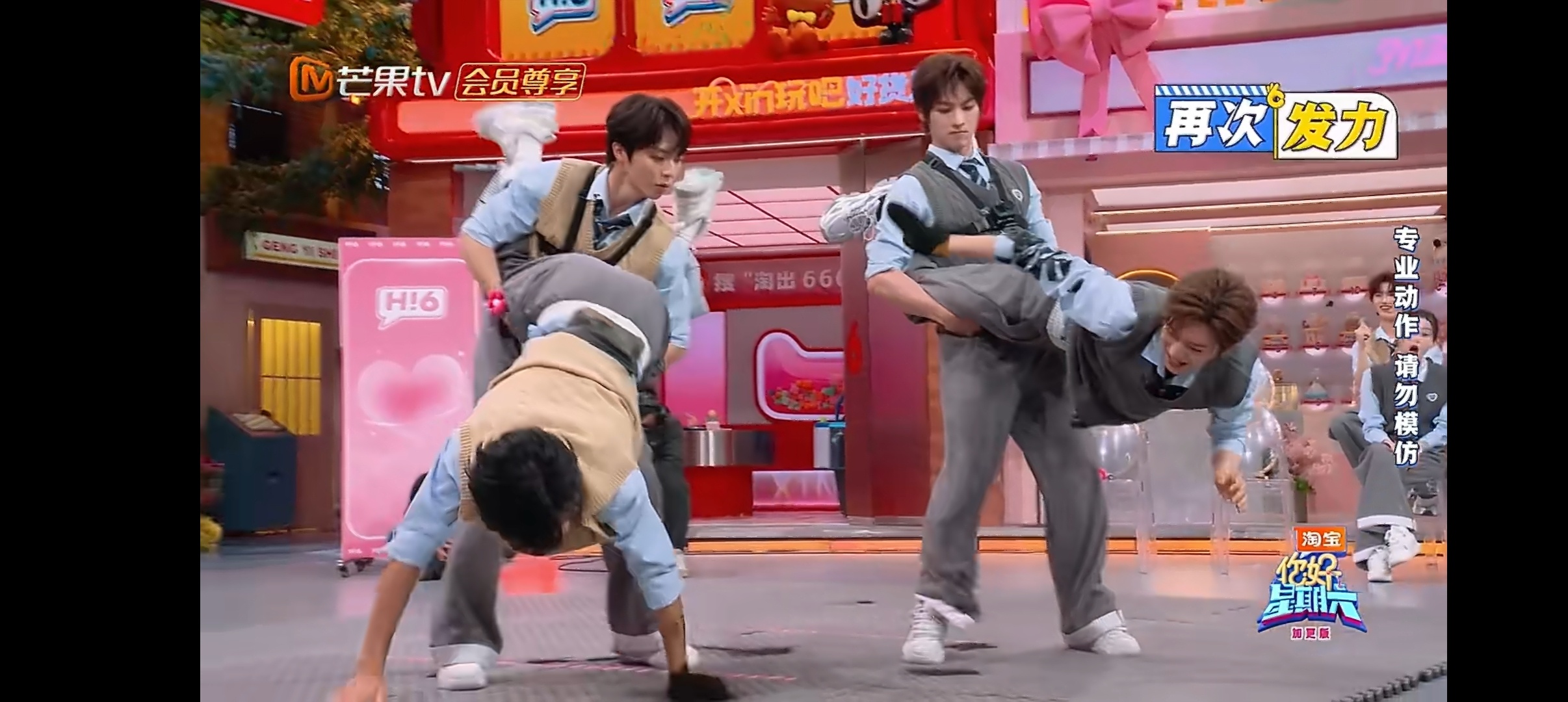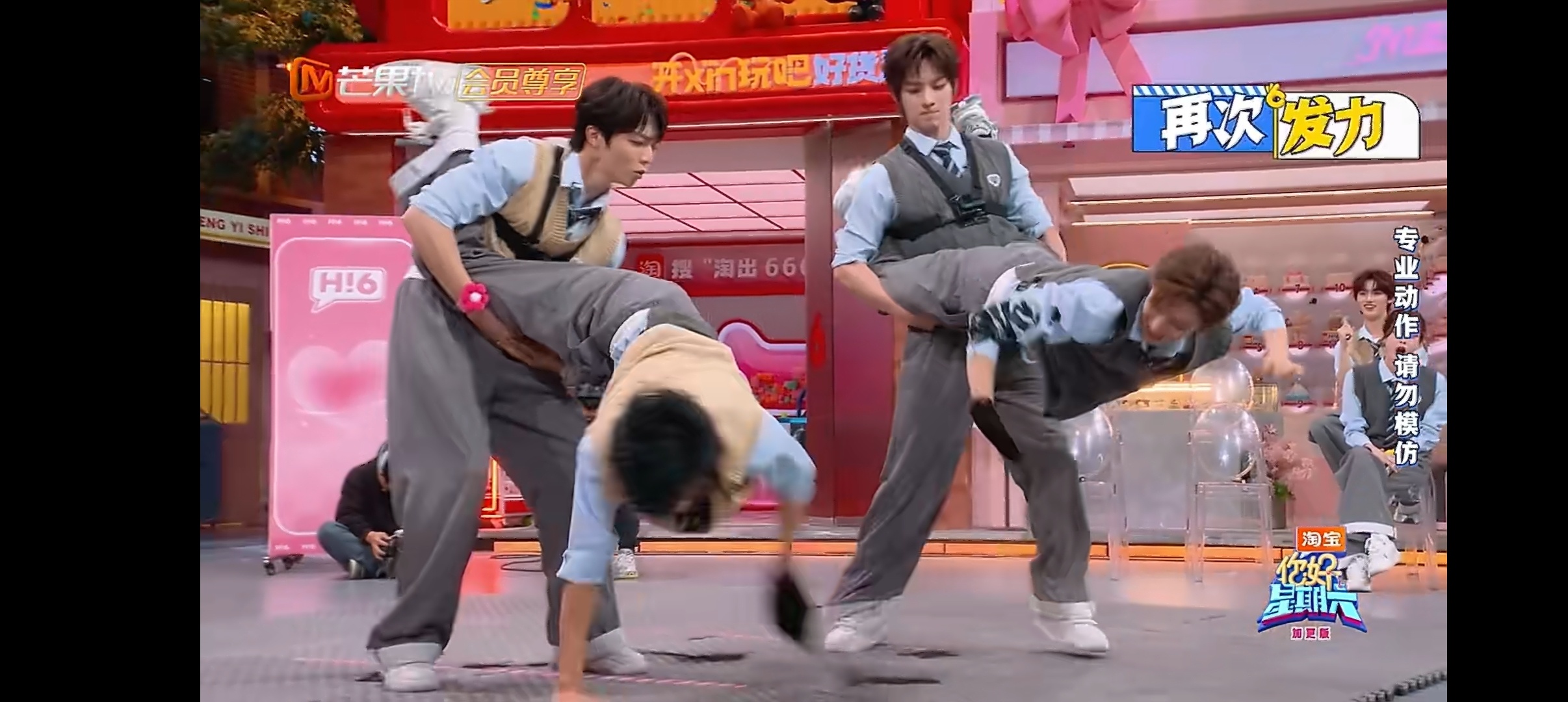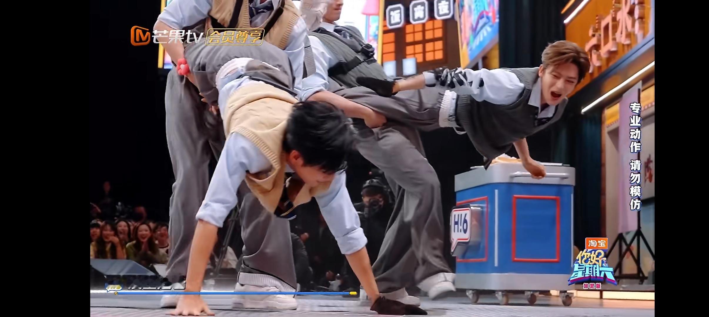 侯明昊靠核心力量碾压比赛 侯明昊核心力量太强了吧,本以为一手扶地已经很牛了,后面直接腾空出击,和颜安完美配合,碾压比赛绝绝绝你好星期六