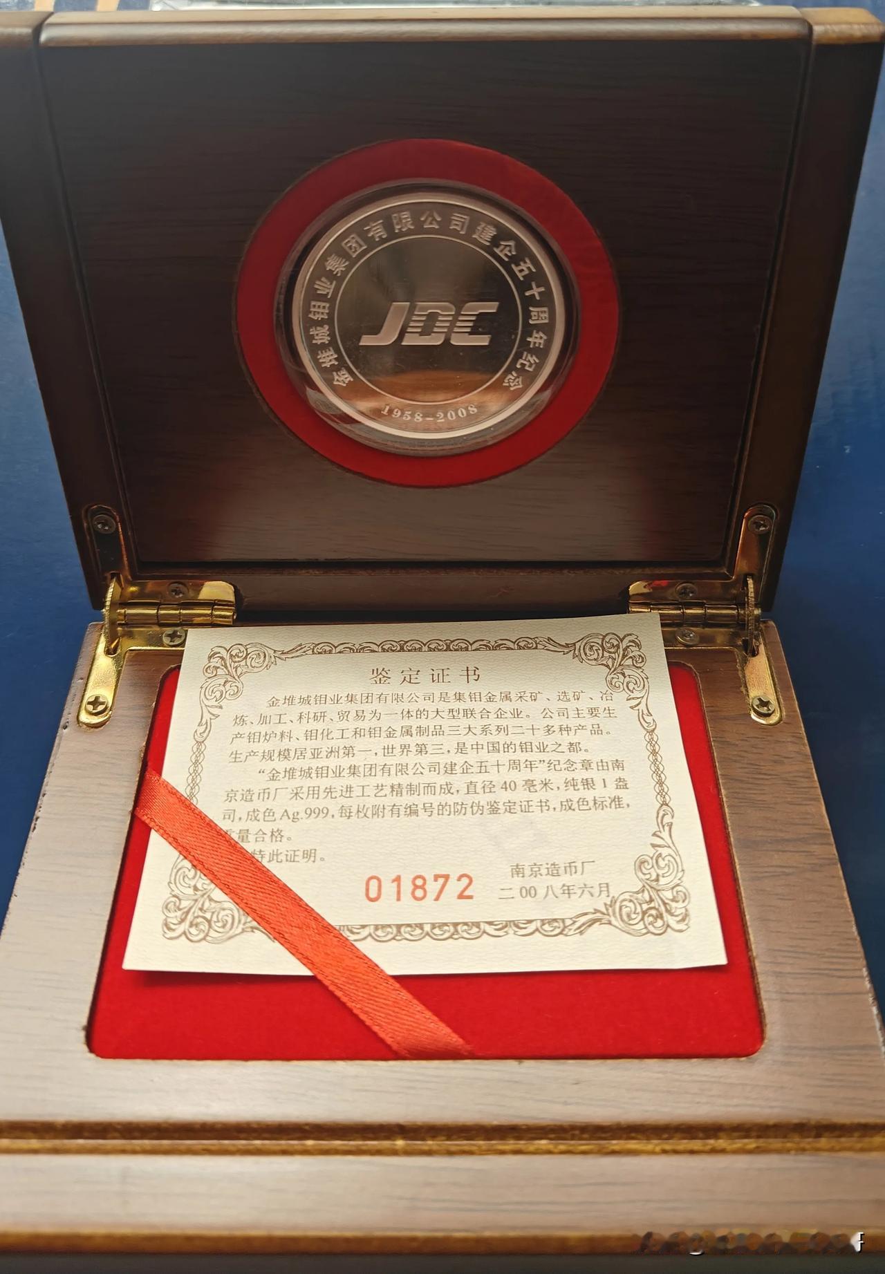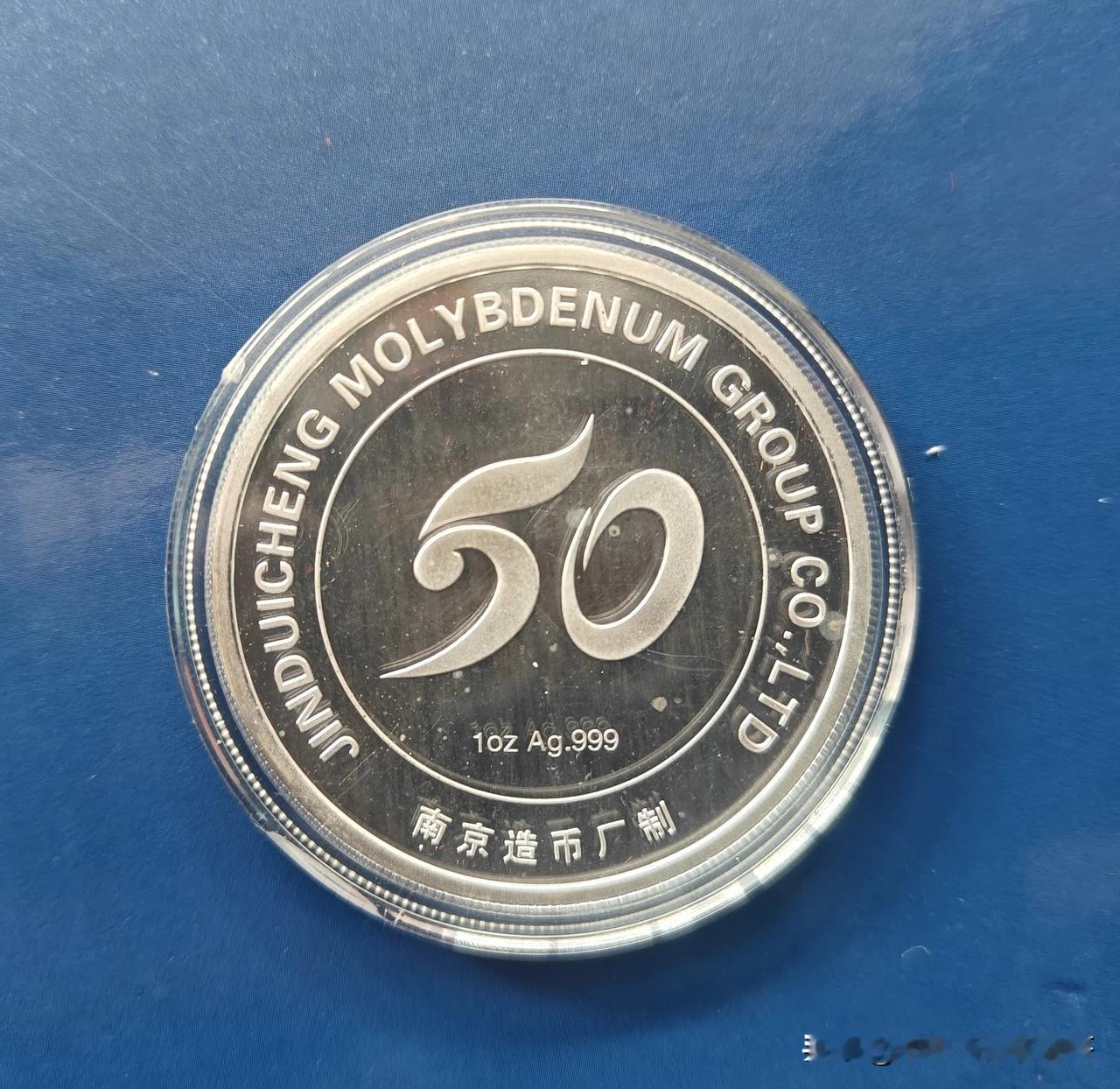 保存了十八年的一枚金堆城钼业集团有限公司建企五十周年纪念银质纪念币。当年这枚30克的银质纪念币市值还不到100元,如今白银价格飞起来,这枚银币也不够一家人吃顿饭。