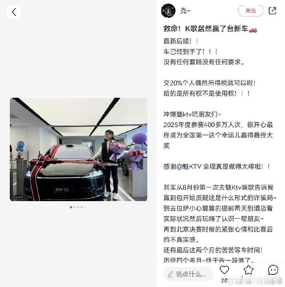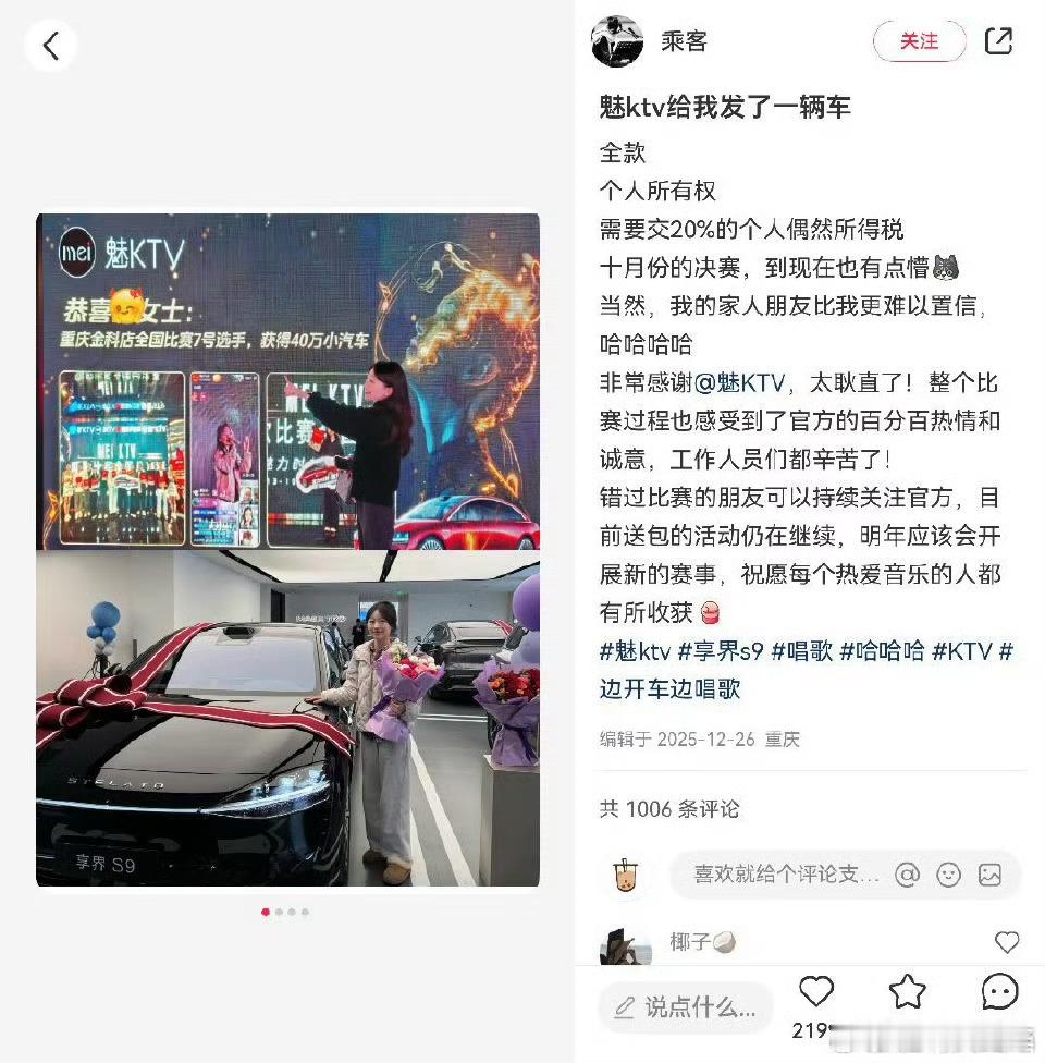 这活动是真可以啊,唱K最终直接发一辆享界S9,给力