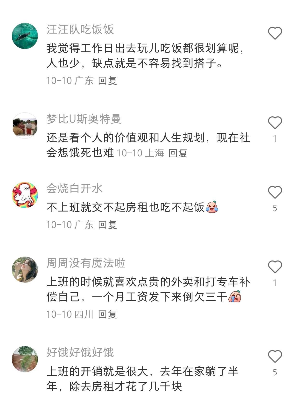 如果一个人长期不工作看到评论很多人还是愿意不上班。但我觉得不上班好无聊啊,放假这