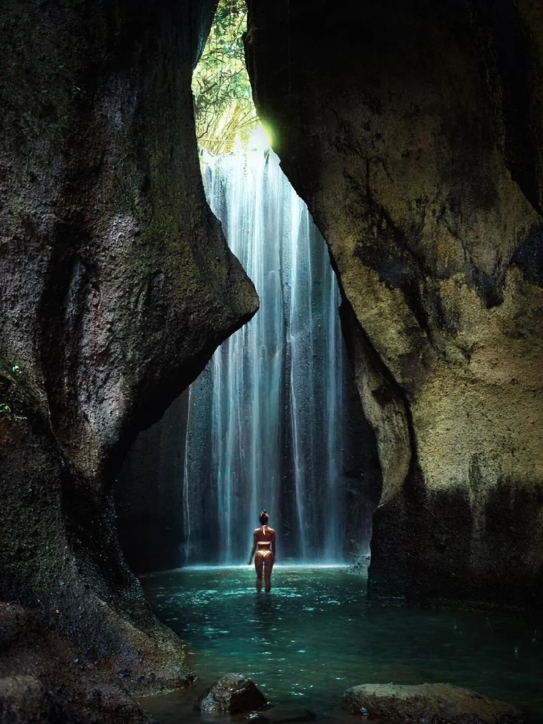 图⑩Tukad Cepung Waterfall:当阳光穿过曲线形的峡谷,照射在瀑布上时,一切都变得美轮美奂