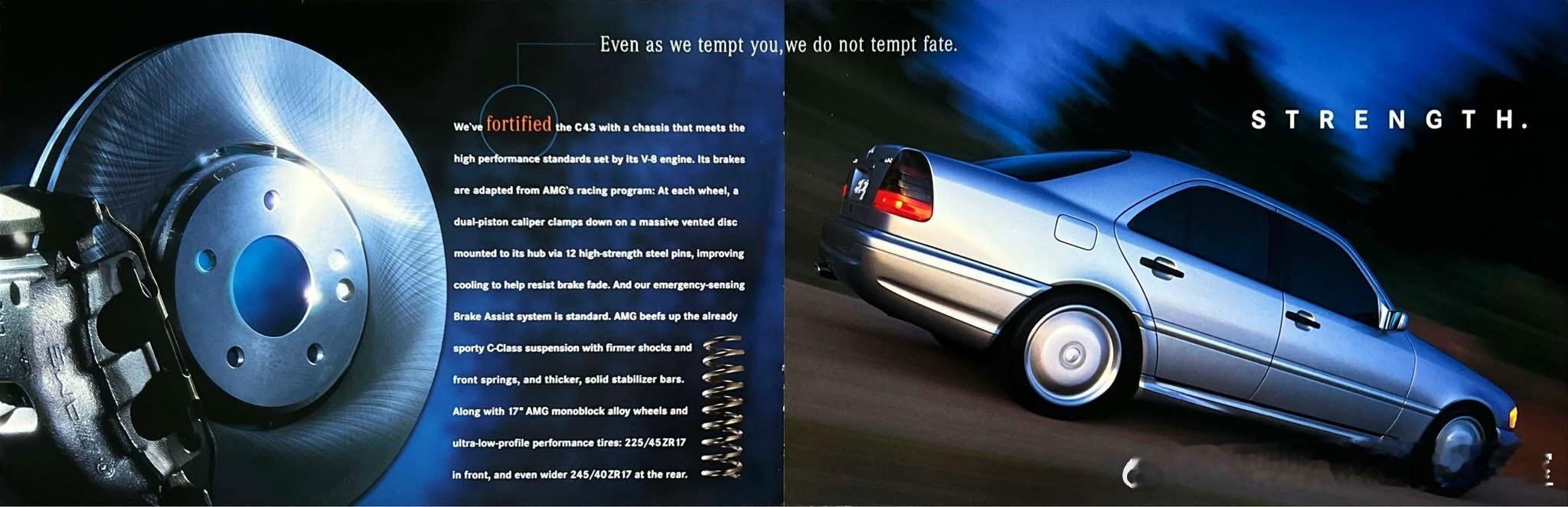 1998款奔驰C43 AMG(底盘W202)是梅赛德斯-AMG并入戴姆勒后的首款C级V8车型,也是首款在Affalterbach工厂完整组装的量产AMG车型,开创C级V8性能路线,1998-2000年间总产量约4200台。C43是首台搭载M113 4.3L V8的C级,输出306PS/410Nm,0-100km/h约5.8秒,电子限速250km/h。W202 C43是90年代末德系性能车代表,见证AMG从改装厂到官方高性能部门的转型。奔驰C级奔驰
