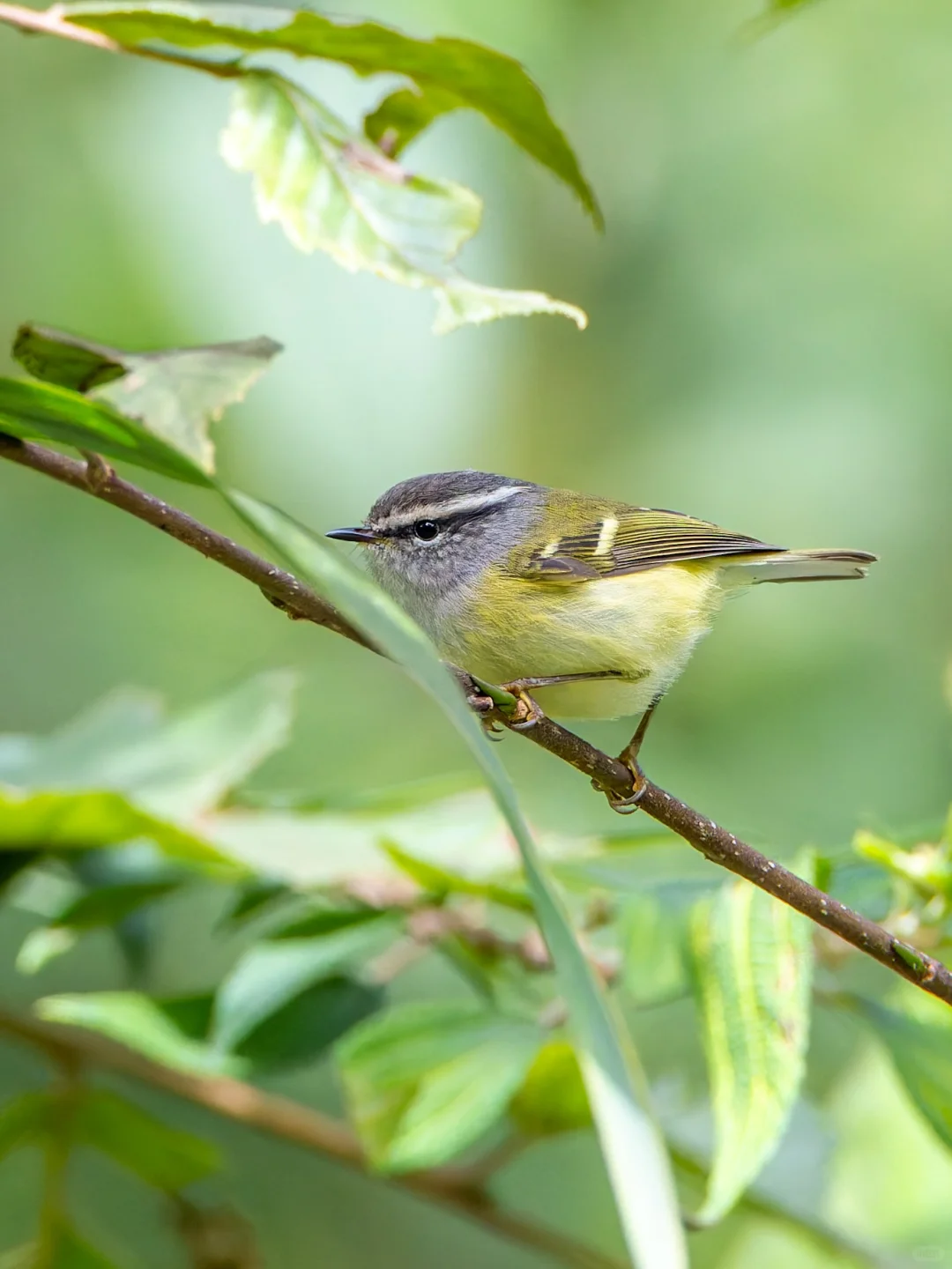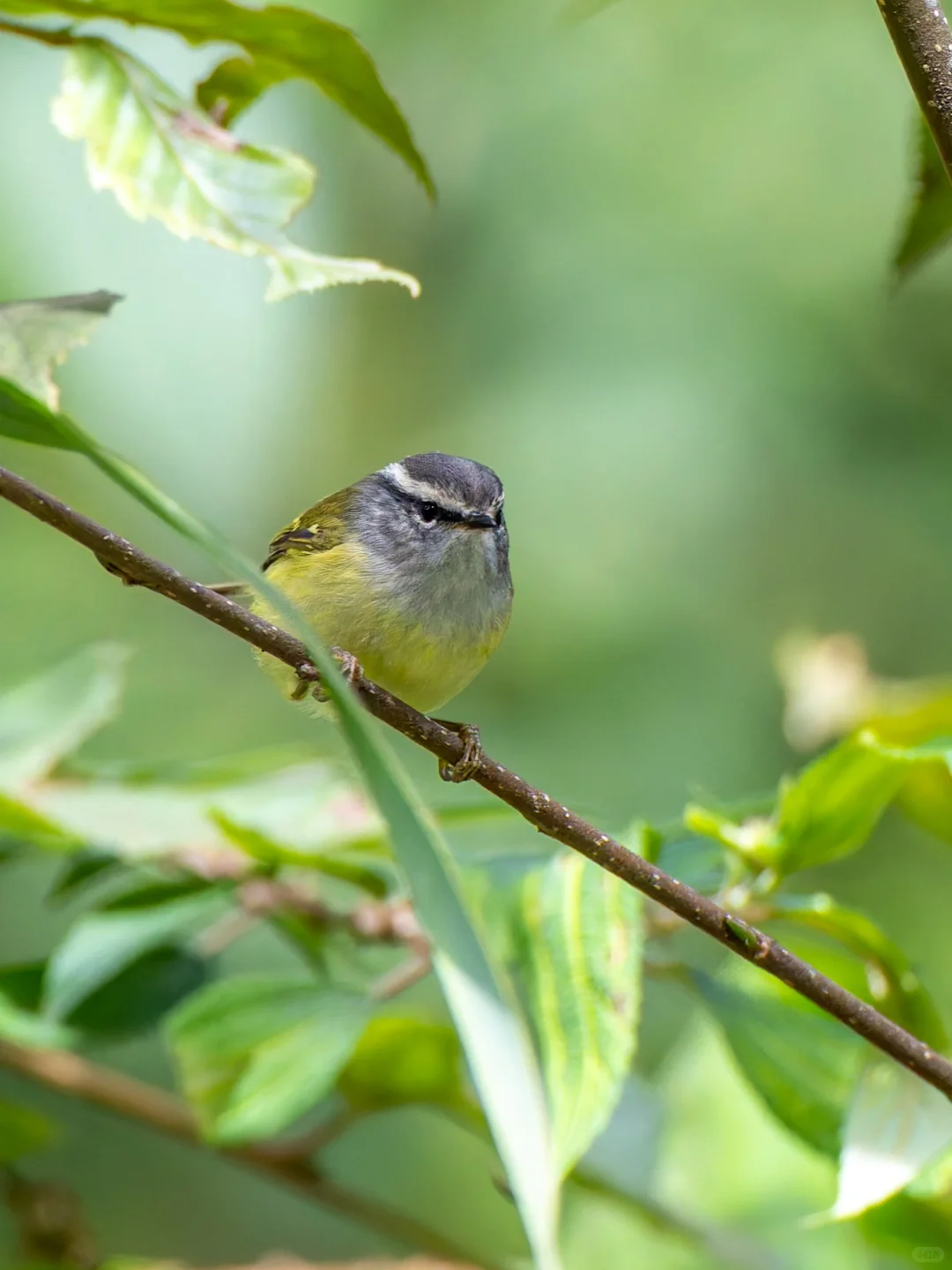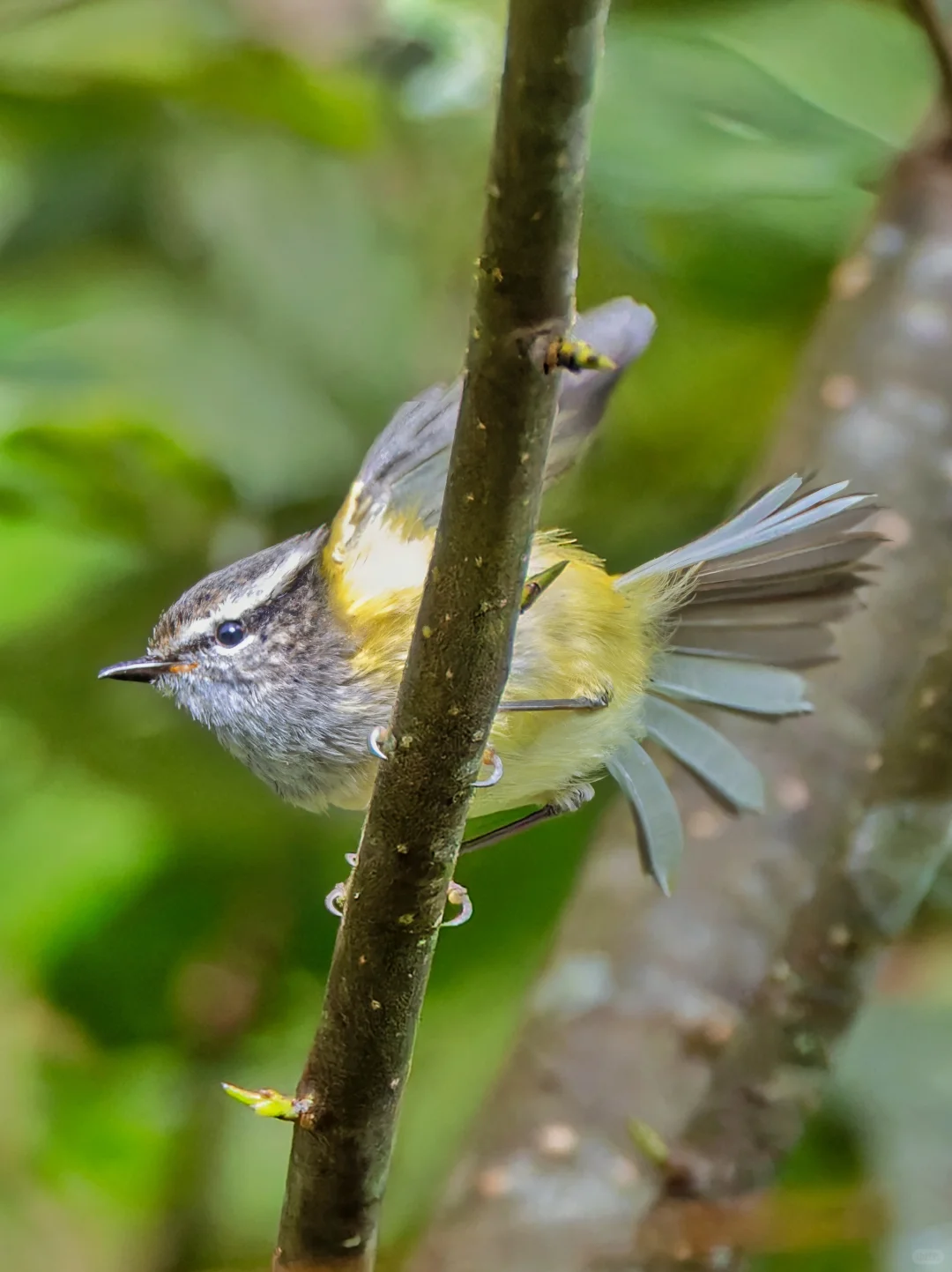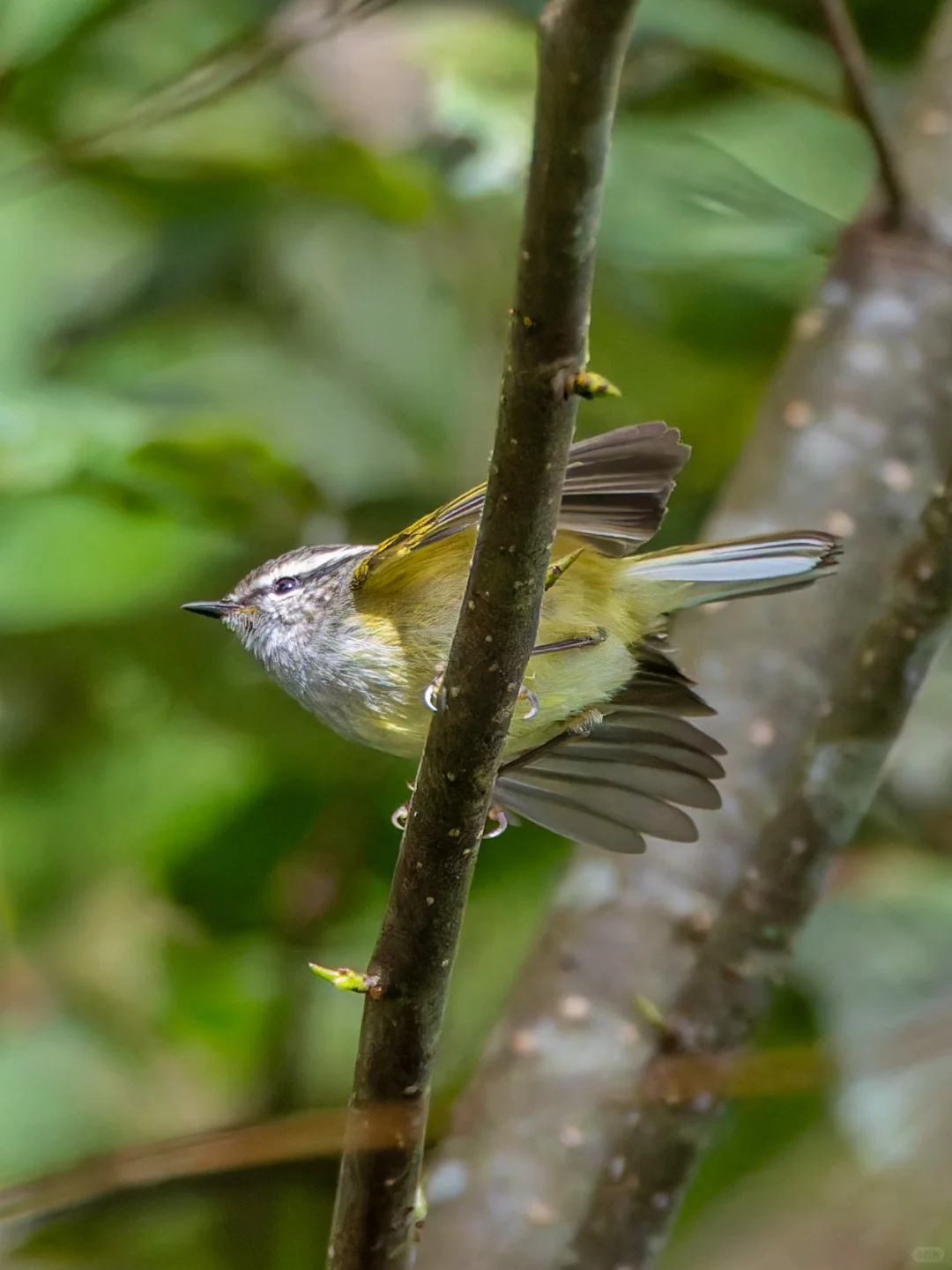 原创拍摄 灰喉柳莺,Ashy-throated Warbler,雀形目柳莺科柳莺属。它们主要分布在喜马拉雅山脉到东南亚北部,属于垂直迁移者,在我国主要在川滇藏,但是我国境内算是少见一点的柳莺啦。 灰喉柳莺的头部是灰白色调,加上白色的眉线,特征明显。在柳莺中算是比较友好的啦。 灰喉柳莺属于看上去短短胖胖的柳莺,圆圆的头非常的可爱,在鸟浪中也是可以一眼看出来。这次在格林村看到的这一只灰喉,因为单侧鼓翼,看上去很像是在傲娇的喊:请你出去!适合做表情包了。