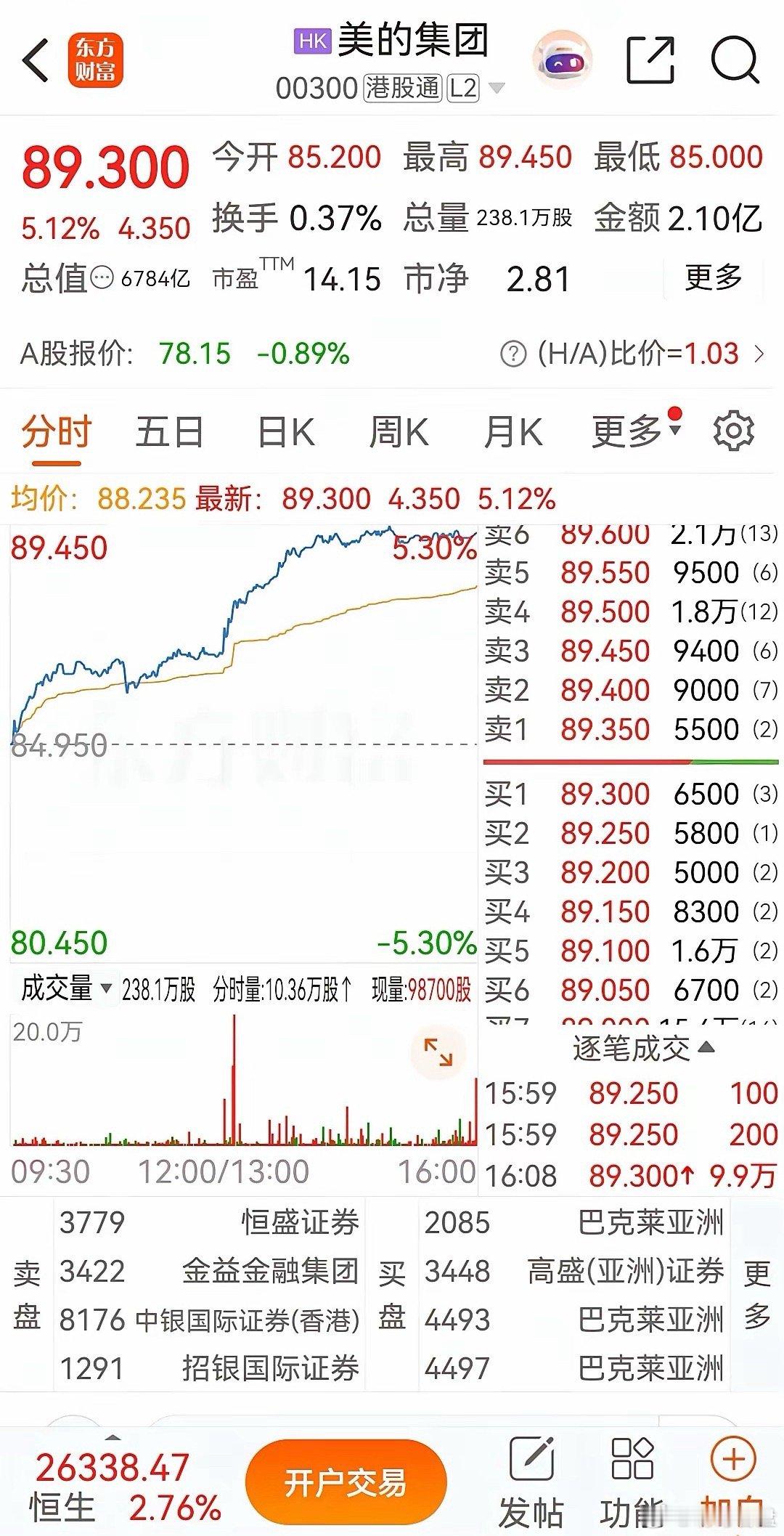 明天股市会涨吗?今天是2026年1月4日星期日,股市继续休市。明天股市将迎来2026年的第一个交易日,明天股市会上涨吗?短期走势只能是猜,很难预测。我猜一下,明天股市会上涨。我的理由是上星期五A股休市时,港股恒生指数大涨了2.76%,港股和A股有很多在两地同时上市的公司,联动性是很强的,明天开盘A股可能补涨。星期五港股上市的美的集团大涨了5.12%,目前港股的美的集团比A股股价还高,明天A股上市的美的集团会补涨吗?能带动家电板块集体走强吗?大家可以猜一下,然后拭目以待明天的情况。以上观点仅供参考,不构成投资建议!