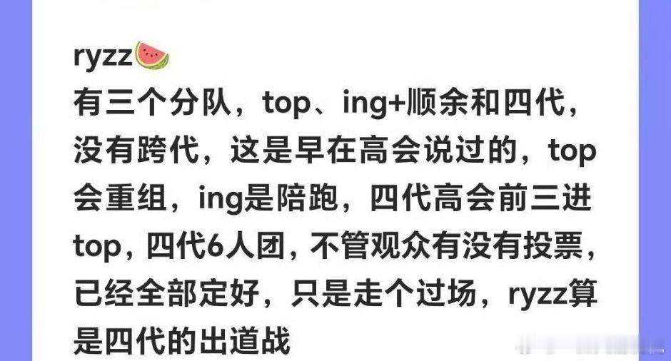 曝TOP登陆少年重组 TF荣耀之战来了,三代和四代一起参加。四代高会前三进top,排名会关系到三代重组和四代出道的名额归属。