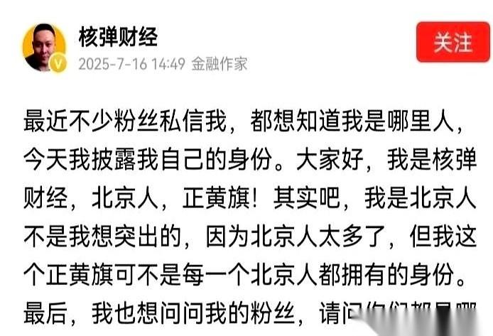 前面大哥嗓门一亮:“我,正黄旗的!” 队伍里瞬间安静了,连小孩的哭声都停了一拍。 大哥挺了挺胸,眼神扫了一圈,像在等别人给他请安。 我旁边的小伙子,头都没抬,手指在手机屏幕上划拉着,嘴里轻飘飘地甩过去一句:“巧了,我们家红旗下的,不知道比你那个旗,大还是小?” 空气凝固了两秒。 角落里一个大妈没忍住,“噗”一声笑了出来,赶紧用扇子捂住嘴。 那个自称正黄旗的大哥,脸上一阵红一阵白,指着小伙子“你你你”了半天,一个字没憋出来。 小伙子这才抬起眼皮,手机往兜里一揣,站直了身子,慢悠悠地说:“大清都亡一百多年了,您这皇粮,上哪儿领去?” 说完,队伍正好动了,他往前挪了一步,再也没看那大哥一眼。 整个过程,就像一颗小石子丢进了死水潭,连个大点的水花都没有,只有一圈圈尴尬的涟漪。 说白了,老黄历翻得再响,也禁不住别人早就换了新日历。 这事儿,你是觉得那大哥就是随口显摆一下,还是真打心底里觉得自己高人一等?