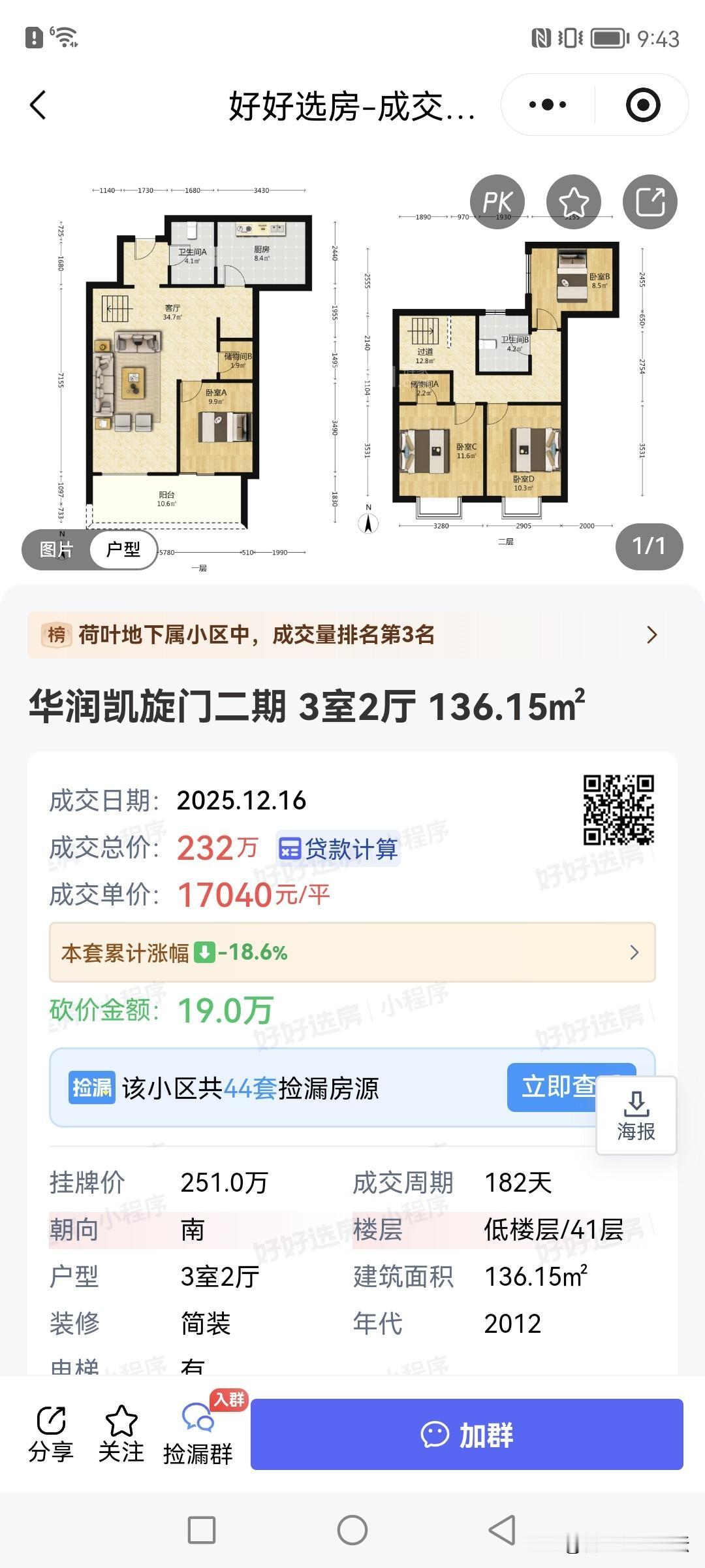 合肥天鹅湖畔,合肥的封面大高层,凯旋门现在单价到了一万七,总价也不高了。 不过这个价格开盘买的也赚了差不多一万一平。买家比前两年买少花了几百万。