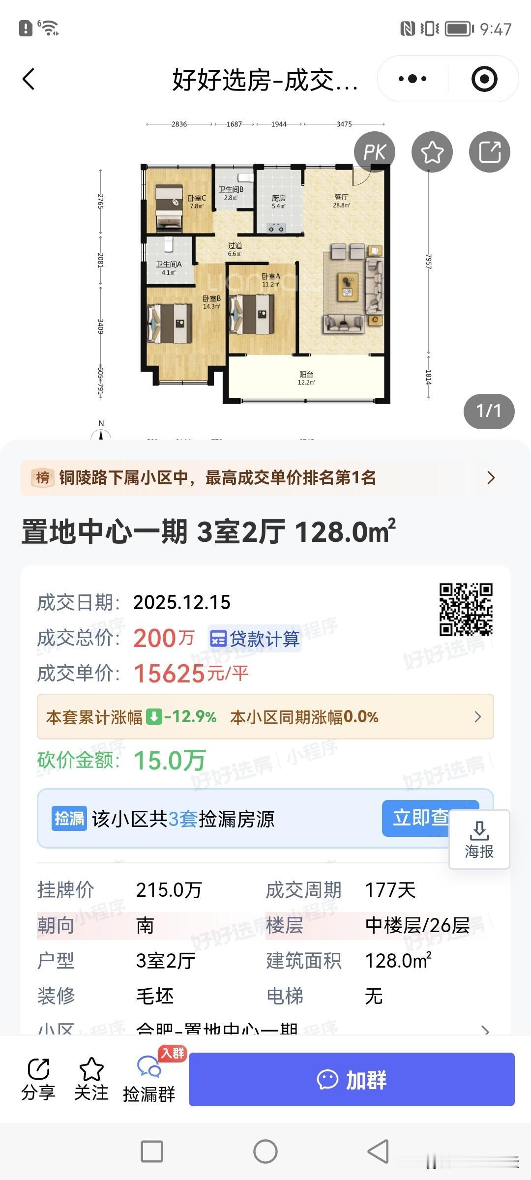 喜欢买新房的,一般都是两种人,第一是钱很多的,第二种是第一次在合肥买房的。但凡知道合肥的情况,等交房去买次新的,等所见即所得,少还两年利息,关键是真便宜。 南七里的金隅单价一万七,之前三四万。置地中心单价一万五,之前摇不到,均价两万。皖投云启锦上单价一万六,新房还没卖掉,均价两万三。融创城的最新的小高层一万五。