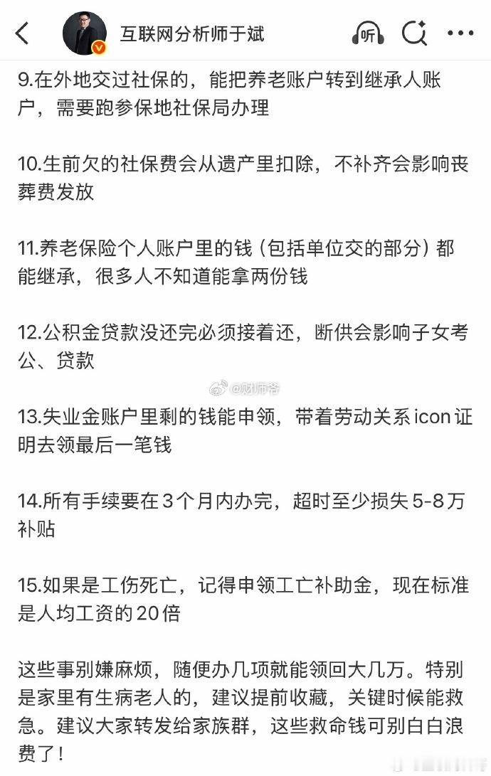 【直系亲人故去,账户里的钱怎么取?涉及社保、医保、公积金、养老金、养老保险、丧葬费、个税……】别嫌麻烦,最少好几万RMB。
