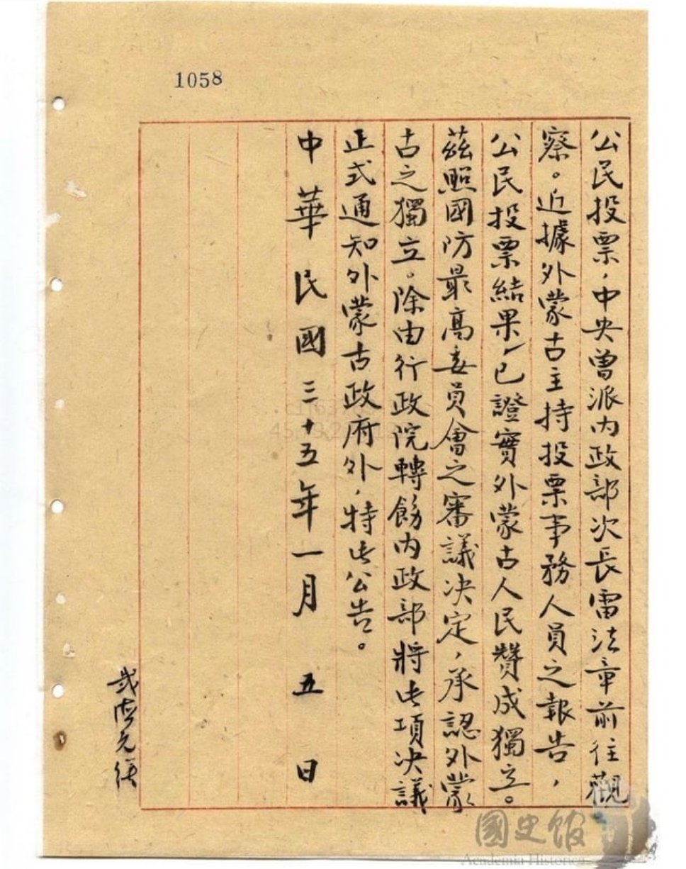 飞扬军事 80年前的今天,1946年1月5日,国民政府承认外蒙古独立!烽火问鼎计
