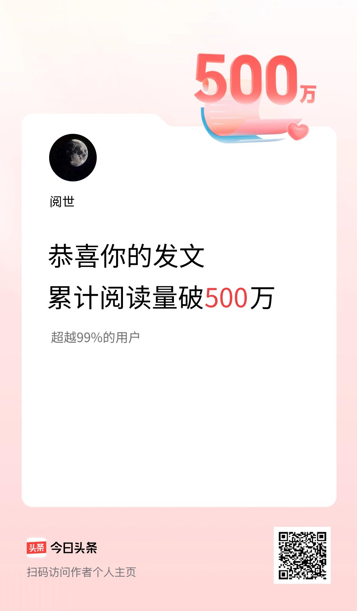 🤝我在头条累计获得阅读量破500万啦!