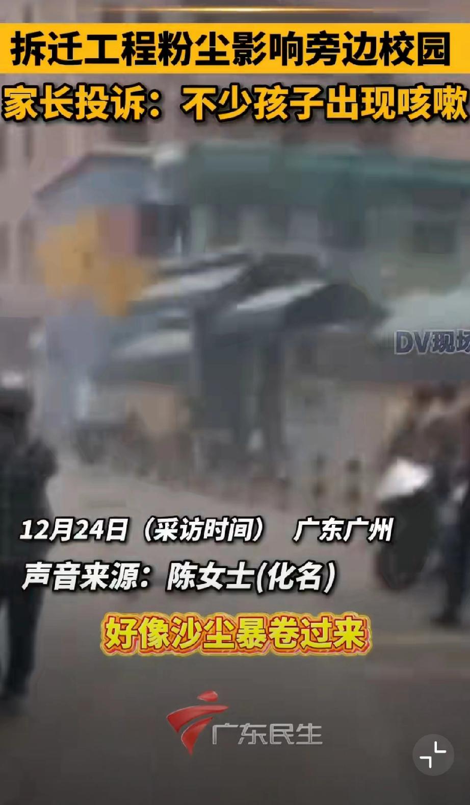纯坏!比起扬尘逼拆迁更可怕的是:众目睽睽之下还在捂盖子甩锅,司机成了忘了加水的背锅侠。封面新闻得到答复是司机操作失误导致。吹几个小时司机没脑子的吗?还是将大众智商按地下摩擦? 这是偶然为之?笔者查到2025年12月24日,广东台报道,拆迁扬尘导致很多学生咳嗽,附近还幼儿园,有意思的是,两个报道中的事件发生时间不同,但都是广州珠海区南洲街道,这么巧?