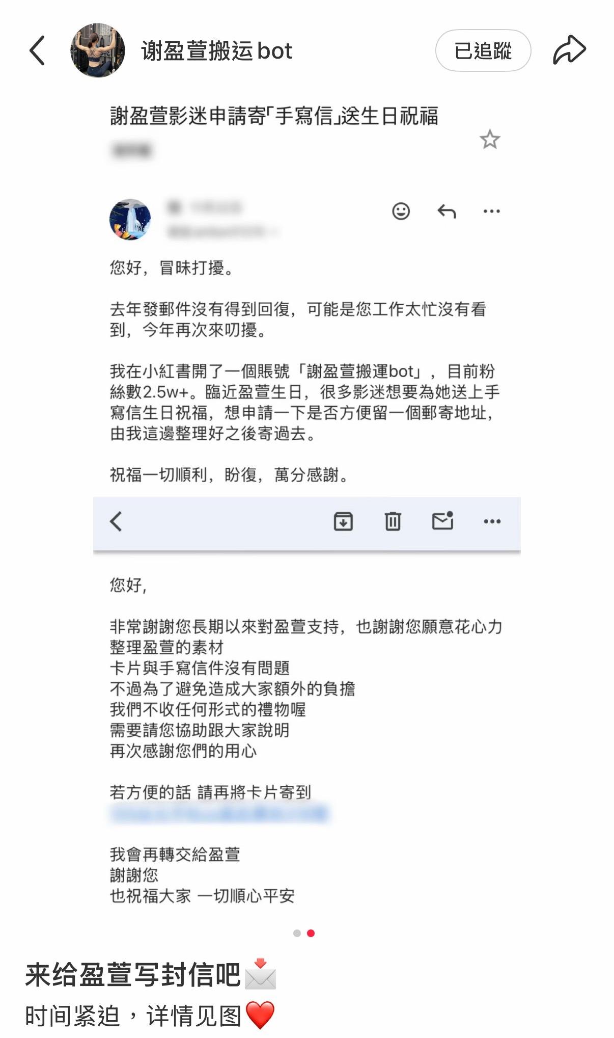 谢盈萱真的好好啊超级珍视大陆影迷的信件,专门po在ins感谢影迷的支持❤️ 末尾还特别感谢了组织寄信的阿婧
