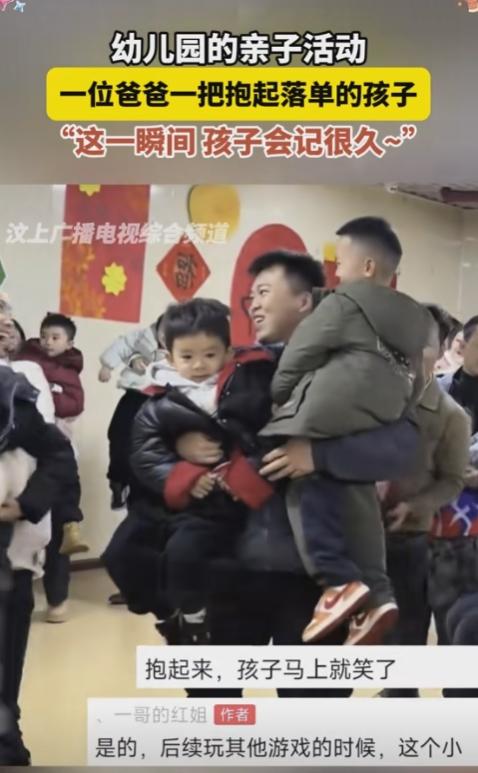 泪目了!陕西,一幼儿园举办跨年夜亲子活动,一位父亲正抱着自己的儿子举高高,却突然发现旁边一名落单的孩子,见他没有家长的陪伴,便一把将孩子抱了起来,而这一抱,孩子笑了,网友也一起笑了:这一瞬间,孩子会记很久。 教室里挂满了彩色气球,地上铺着软乎乎的地垫,到处都是家长陪孩子打闹的笑声,热闹得能溢出来。 有个爸爸正抱着自家儿子玩举高高,孩子笑得咯咯响,父子俩凑在一起的样子特别温馨,可就在他又一次把儿子举起来的时候,眼角余光瞥见了旁边的一个小不点。 这孩子一个人站在角落,没家长在身边,小手攥着衣角,眼睛直勾勾盯着旁边嬉笑的亲子,脸上全是羡慕,还有点孤单,跟周围的热闹格格不入。 换作很多人,可能也就扫一眼过去了,但这个爸爸顿了顿,没放下怀里的儿子,反而调整了个姿势,用一只胳膊稳稳护住自家娃,另一只手轻轻伸过去,把那个落单的孩子也抱进了怀里。 两个小家伙一左一右靠在他胸前,原本蔫蔫的那个孩子,瞬间就笑开了花,这一幕被现场老师拍下来发上网,一下子就火了——不是因为多华丽,就是这份不经意的温柔,太打动人了。 有人说“这一抱能暖孩子一辈子”,还有人分享自己的经历,说四十多了还记着小时候独自等家长时,邻居阿姨递的一颗糖,那种被在意的感觉至今都忘不了。 更多人在夸这个爸爸,说他不仅顾着自家孩子,还能留意到孤单的小家伙,这份善意太难得。 对幼儿园的小朋友来说,亲子活动就是“被陪伴的主场”,别人都有家长陪,就自己一个人,那种被冷落的感觉会被无限放大。 这个爸爸的拥抱,看似简单,实则补全了孩子最需要的安全感和归属感,这不是刻意做出来的“表演”,而是下意识的举动——这种发自内心的善意,才最有力量。 有研究说过,小时候得到过非亲属的善意,孩子长大后会更乐观、更懂共情,说白了,就是这份温暖会变成他未来面对世界的底气。 反观现在有些家长,带孩子参加活动只盯着自家娃,对周围的情况漠不关心,两相对比,这个爸爸的格局一下子就显出来了。 亲子活动的意义,从来不止是陪孩子玩,家长的一言一行,都是孩子的“活教材”。 现场其他孩子看到爸爸同时抱着两个小伙伴,会下意识地明白“帮助别人是件好事”,这种在真实场景里学到的善良,比一百句“你要乐于助人”的说教都管用。 现在很多家长拼命给孩子报各种兴趣班,却忽略了最基础的品德教育,其实像这样的瞬间,才是最好的教育契机。 希望我们都能多一份留意,多一次伸手,毕竟你的一个小举动,可能就会成为别人记忆里的一束光,你觉得这个爸爸的举动,最打动你的地方是什么? 信息来源:汶上广播电视综合频道