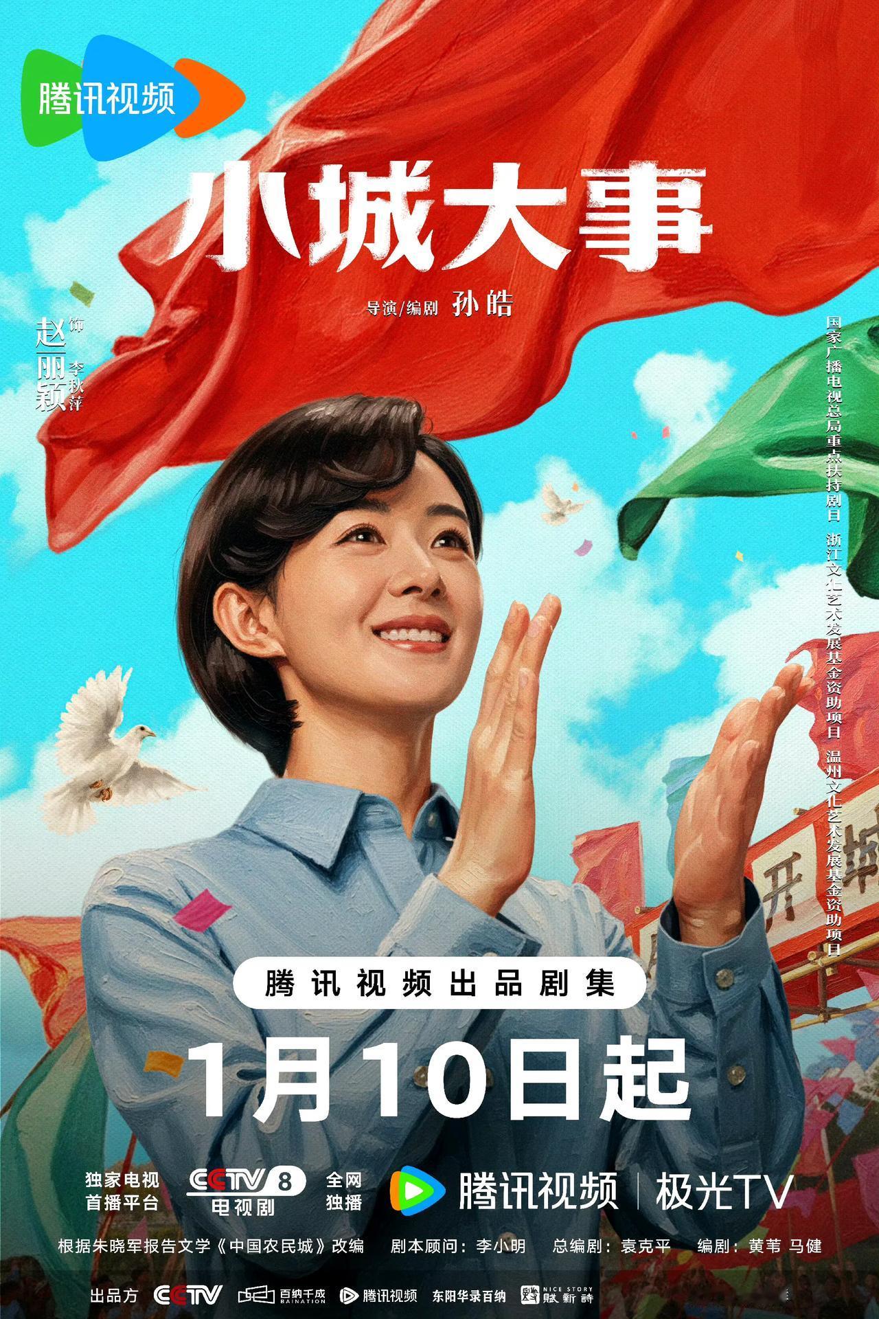 年代剧《小城大事》定档1月10日! 赵丽颖、黄晓明颠覆形象演绎基层干部奋斗群像。以浙江温州龙港农民造城真实历史为原型,改编自朱晓军获浙江省“五个一工程”奖的报告文学《中国农民城》,原名《造城者》。剧情还原1980年代温州龙港农民“自筹资金、自主规划”,在荒芜滩涂上建现代化城市的真实事件,核心主题“人民城市人民建”。年代剧《小城大事》定档 小城大事 小城纪录片 小城之变 小城大事定档 赵丽颖