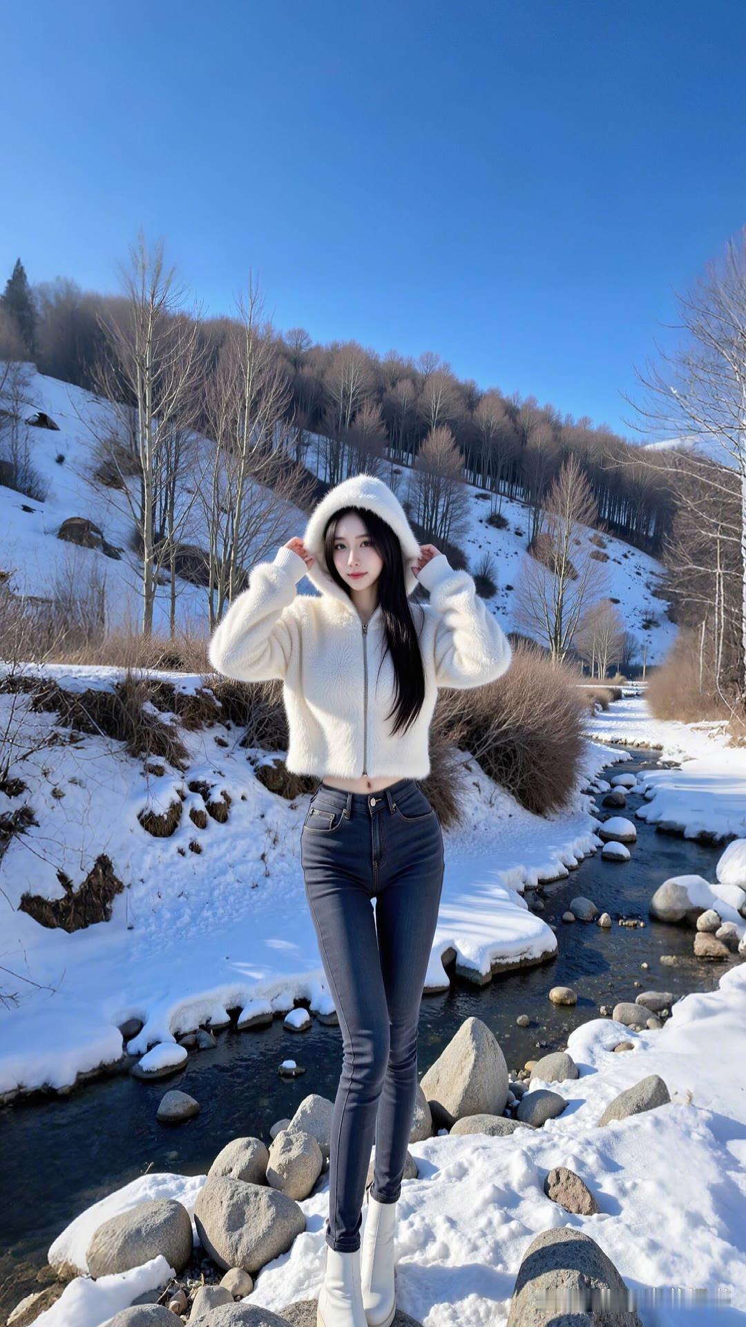 冬日雪景自拍,穿搭真的太重要啦!像白色毛绒外套搭配蓝色牛仔裤,简直甜酷时髦,小个子穿还显高显瘦。就像现在流行的环保仿皮草白色毛绒外套,短款带腰带,一系上腰线直接提升,谁能看出吃多了呢。 蓝色牛仔裤选微喇开叉的,走路带风还显腿长。再配上奶白焦糖底的老爹鞋,和外套顺色,出片率超高。配饰也不用多,焦糖皮手套、毛呢贝雷帽、棕色表盘腕表,低调又有质感。在雪景里这么一穿,随便一拍都是时尚大片!