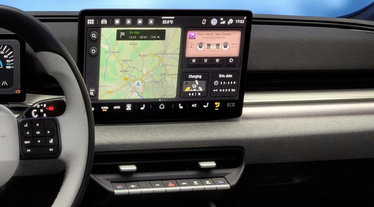 大众电动车新趋势:大屏还在,按钮更多 今年4月大众纯电新车ID.Polo将在欧洲上市销售,预计起售价低于3万美元,这款经济型新车将是大众的关键产品,而最新公布的内饰图片显示,这款车回归了物理按键时代。 ID.Polo拥有10.25英寸仪表屏和13英寸中控屏,同时还有非常多物理按键,包括中控屏下方的固定按钮栏,可以控制座椅加热和空调。方向盘上有巡航控制、音量和各种车辆设置按键。【来自懂车帝车友圈】
