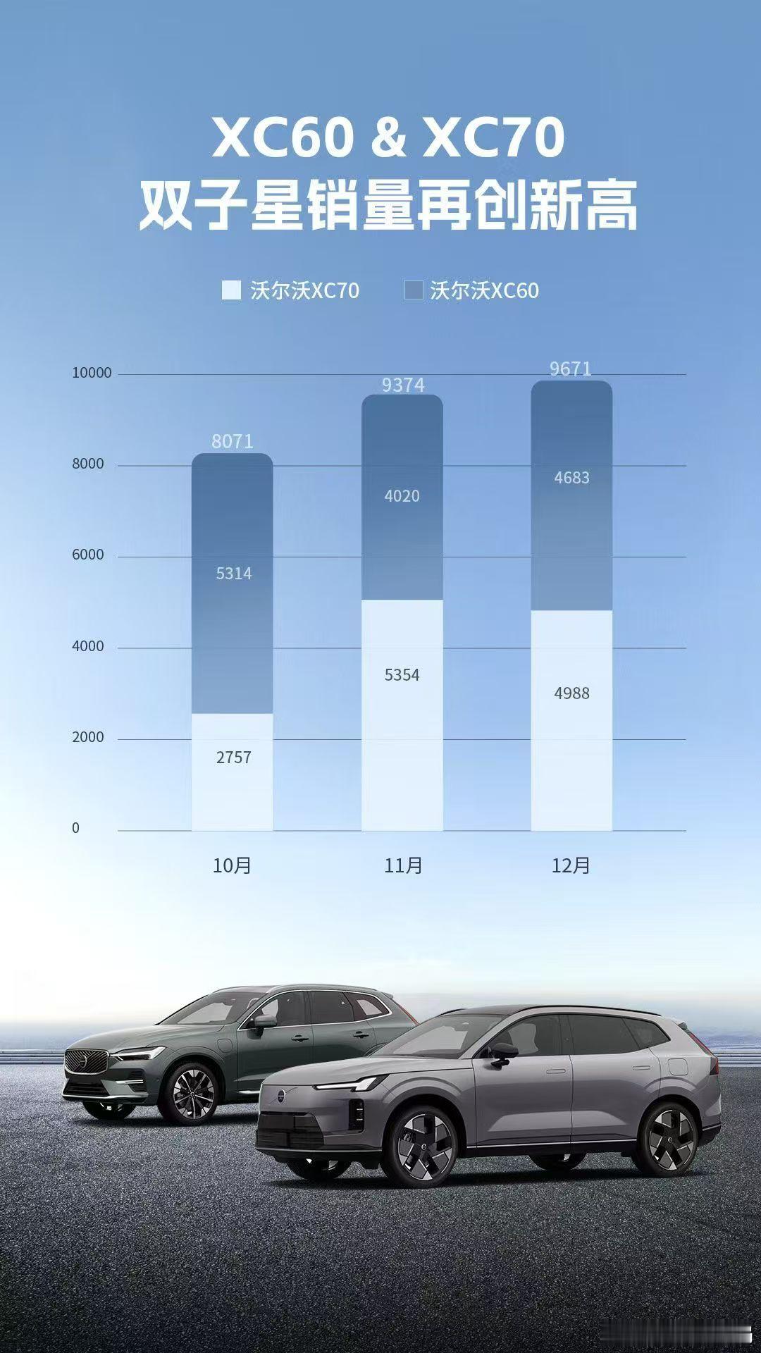 沃尔沃公布2025年12月销量新车情报局日前,沃尔沃汽车公布了2025年12月销量数据,中国大陆市场共计售出16,063辆,环比上涨12.8%,全年累计销量达到149,166辆。其中全新XC70自上市以来便备受瞩目,迅速成为沃尔沃品牌的销量担当。12月,全新XC70销量达4,988辆,上市3个月以来累计销量突破14,199辆,领跑豪华品牌混动车型。第四季度沃尔沃新能源车型销量达到15,328辆,占比达到34.7%,实现跨越性增长。燃油车型方面,12月沃尔沃XC60销量达到4,683辆,与全新XC70双车合计销量达到9,671辆,再创新高,连续第三个月稳居豪华中型-中大型SUV第一梯队。