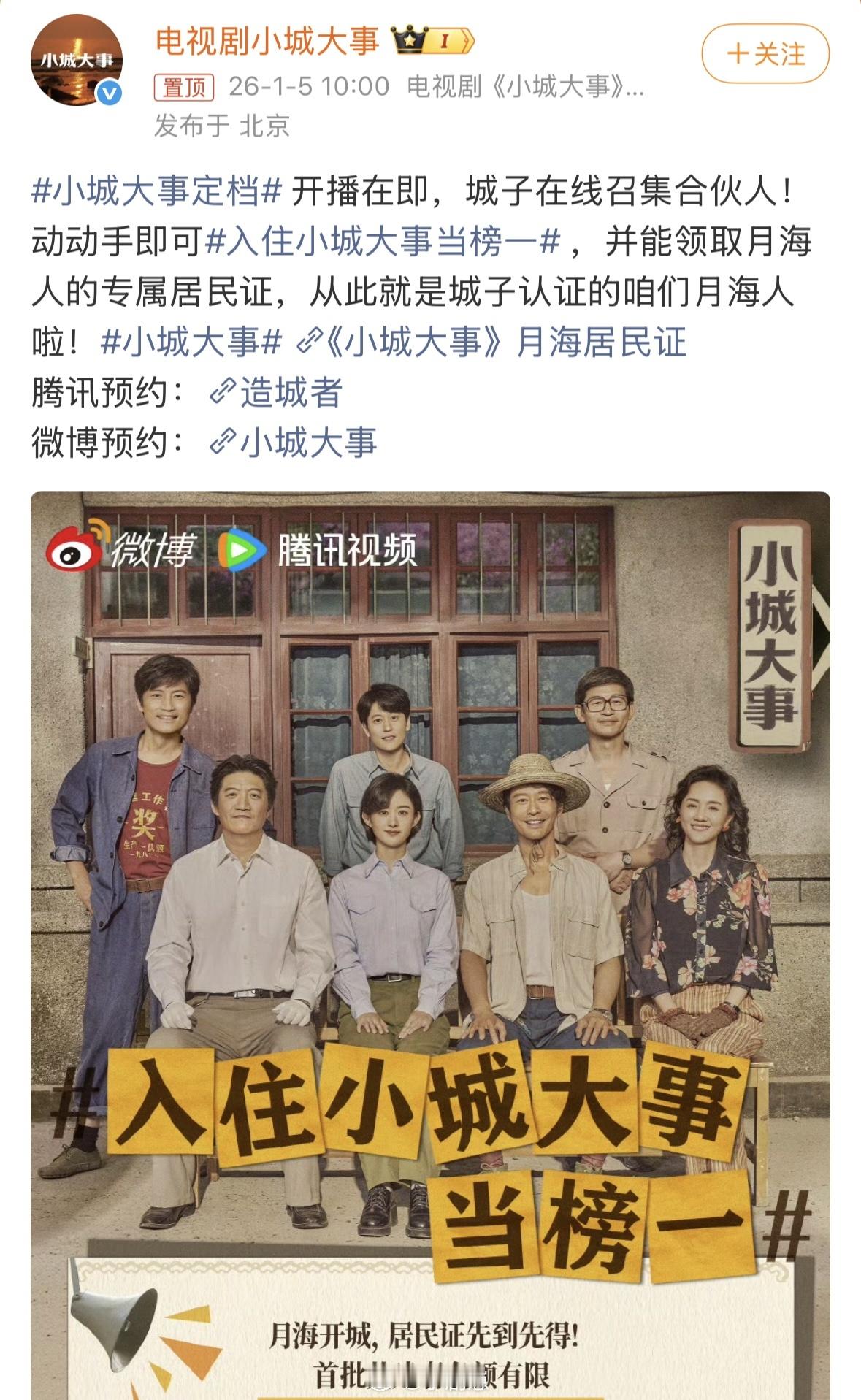 入住小城大事当榜一小城大事一座城一群人小城大事月海居民证速速安排!定档预告信息量拉满,全员热血奋斗超带感,1月10日锁定小城大事,必须看!