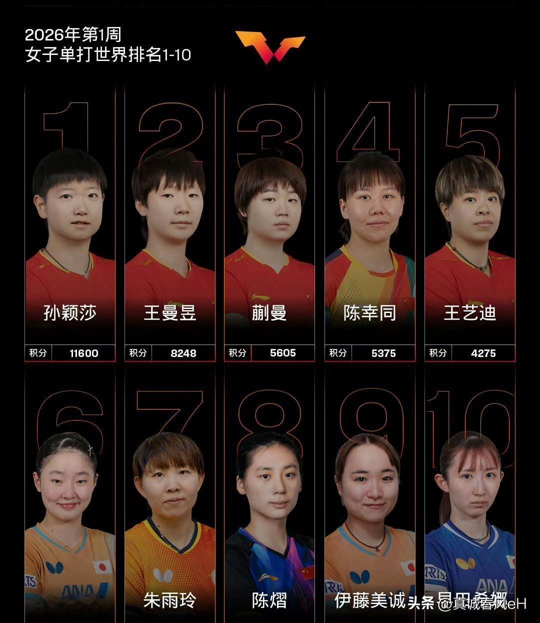 2026,乒乓球的新故事要开始了 新年新气象,规矩变了,周二见的排名,没了,改成周一,挺好,球迷高兴,运动员也能早点知道情况,赛事也好推广,国际乒联,真是用心良苦。 男单王楚钦,厉害,还是第一,林诗栋也不错,紧跟着,女单孙颖莎,没话说,稳稳的第一,王曼昱第二,实力在这儿摆着呢,孙颖莎,连续181周第一,太牛了,可是,她也累,多哈比赛,退赛了,伤病是个问题,希望她能好好休息,满血归来。 国乒,还是强,男队,王楚钦林诗栋,双保险,女队,孙颖莎领头的“五朵金花”,优势大,种子席位,很重要,前四名有优势,女队不用愁,孙颖莎,王曼昱,蒯曼,陈幸同,稳稳的,男队有点压力,梁靖崑排名掉了,王楚钦林诗栋,要加油。 梯队建设,不能放松,男队,头部稳,王楚钦林诗栋,没问题,中部有点弱,向鹏他们,要努力,尾部,陈垣宇,黄友政,未来可期,女队,整体好,顶尖强,新人也多,队内竞争激烈,这是好事,有个19岁的覃予萱,据说,下一个孙颖莎。 日本队,不能小看,她们女队,人很多,跟中国队差不多,张本美和,伊藤美诚,早田希娜,个个都不好对付,欧洲也有,德国的温特,美洲,巴西的高桥布鲁娜,波多黎各的迪亚兹,都挺厉害,还有海外兵团,澳门朱雨玲,也在努力。 平野美宇,以前很厉害,现在,不行了,排名掉了很多,技术遇到瓶颈了吧,乒超联赛夺冠,希望能给她带来新的开始,很多老将,都在思考,未来的路,要怎么走,大家都在想,这到底是怎么一回事。 2026年,乒乓球,会更热闹,竞争会更激烈,谁能笑到最后,不知道,中国队,要面临挑战,更要抓住机遇,希望乒乓球,能越来越好,更多人喜欢,这才是最重要的,很多人看完这个故事,都会去想吧。乒乓球世界排名 国乒排名 乒乓球排名