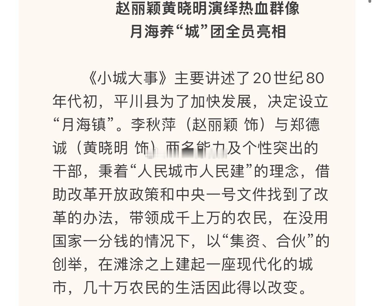 振兴国剧:广电总局重点扶持项目《小城大事》即将播出,赵丽颖黄晓明演绎热血群像月海养“城”团全员亮相