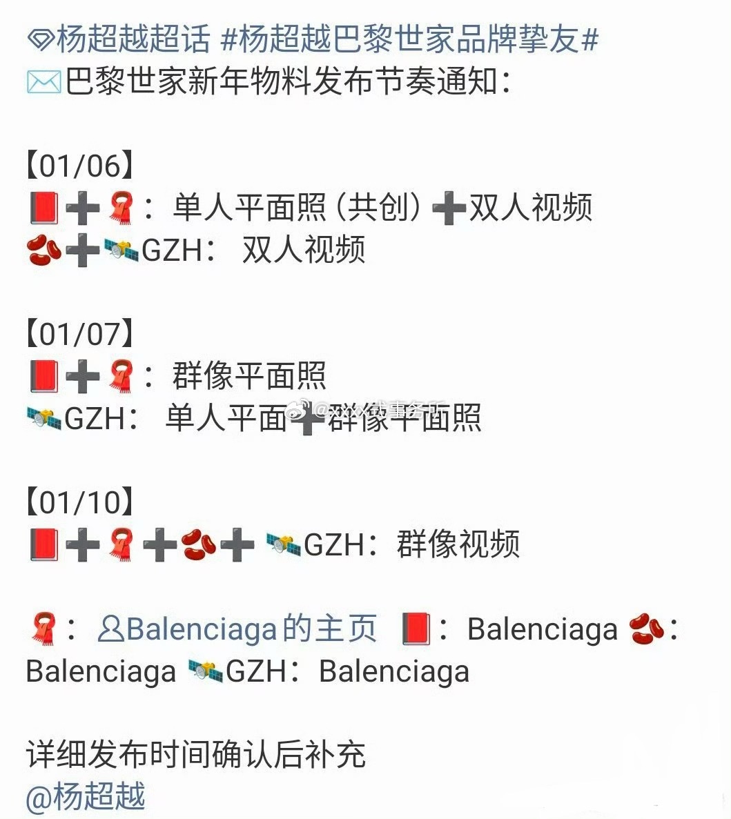 陈飞宇杨超越巴黎世家新年广告物料要来了