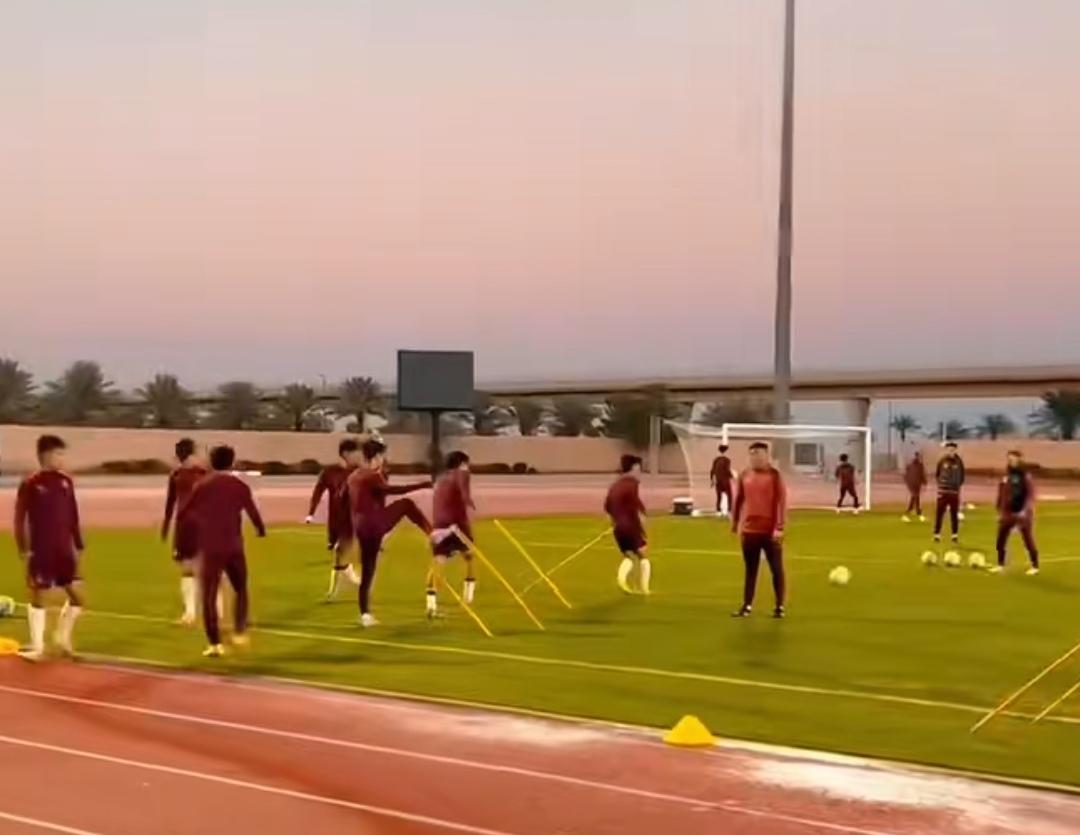 沙特利雅得首堂训练课开启,中国U23国足今天终于开始了到利雅得的第一堂训练课,由