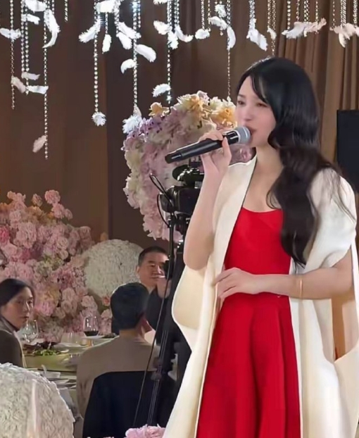 42岁金莎接婚礼商演:大波浪+红裙+白靴,减龄又高级,嫩得像28岁