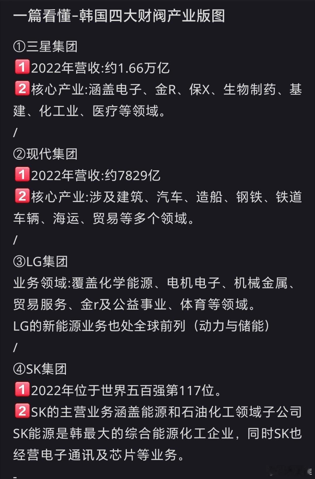 韩国四大财团掌门人在京集体亮相一图看懂韩国四大财阀(三星、现代、LG、SK)产业版图!科技先锋官