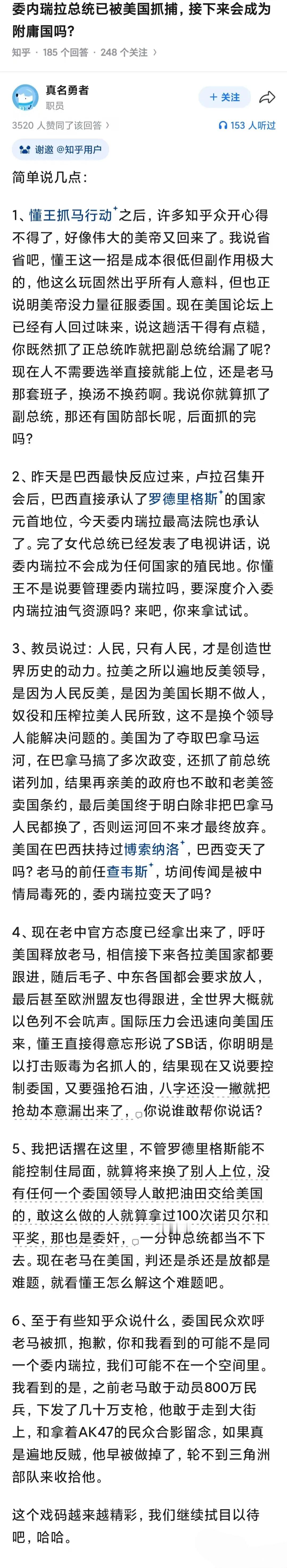 关于委内瑞拉的未来,我觉得这个网友的分析很到位。